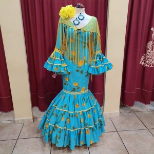 Modelo AURORA CREPE (Talla 36) Estampado Turquesa-Amarillo