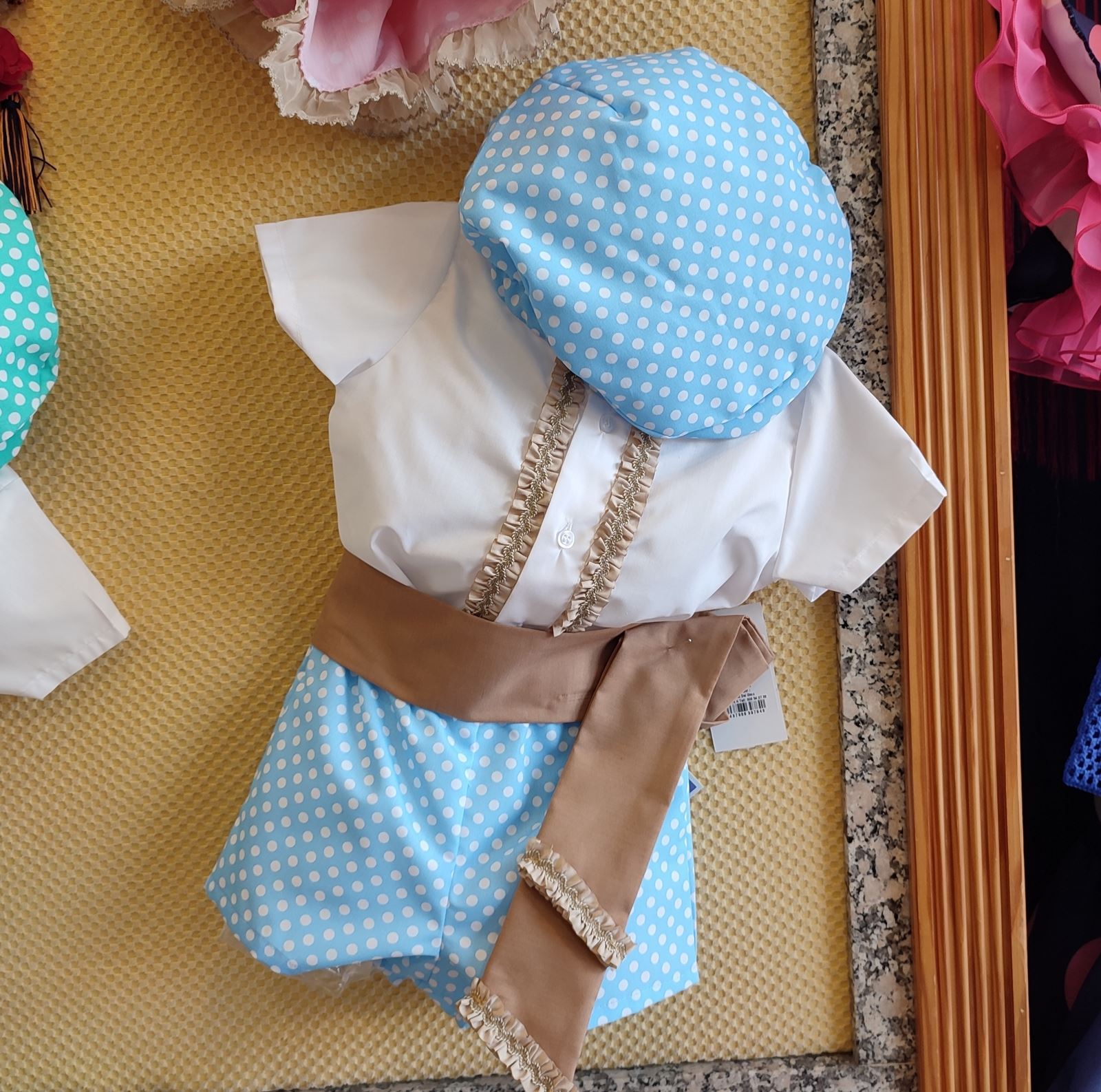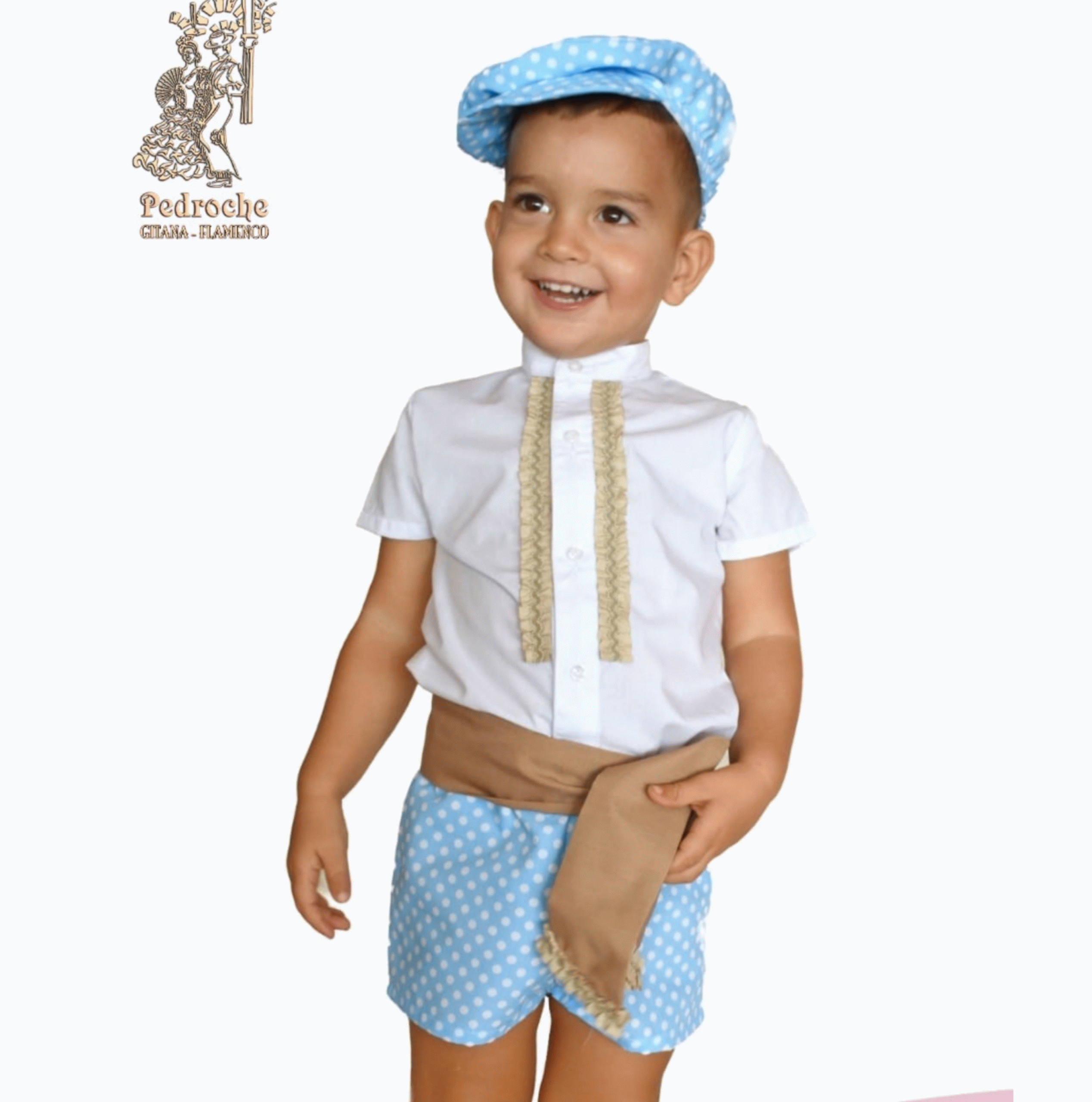 Conjunto de Pantalon corto en celeste con lunares blancos.