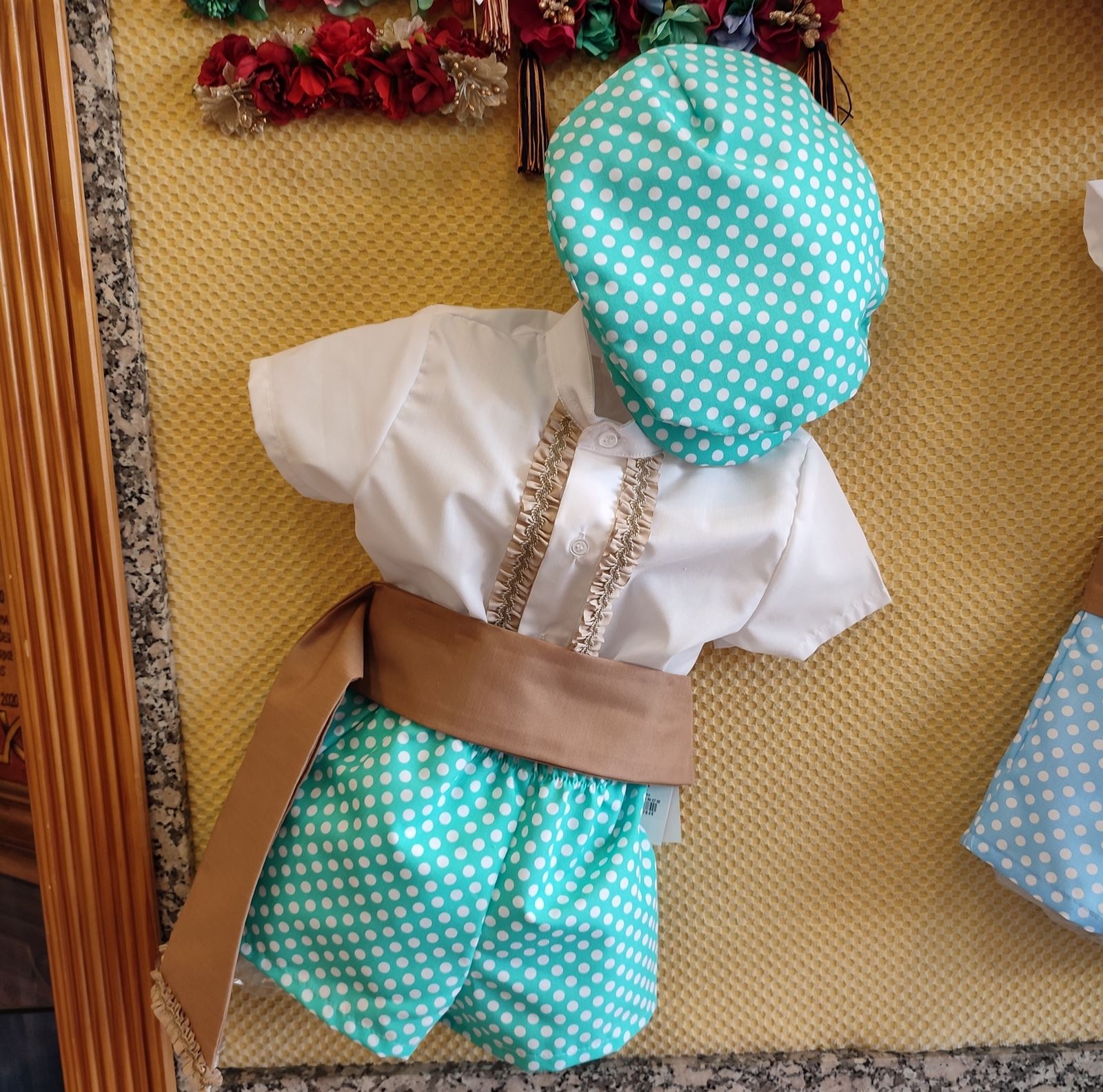 Conjunto de Pantalon corto en verde agua con lunares blancos.