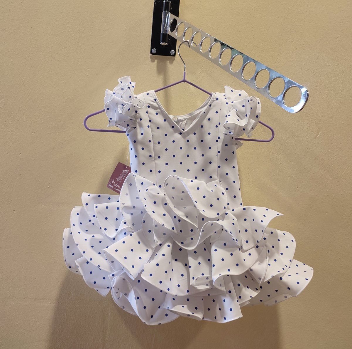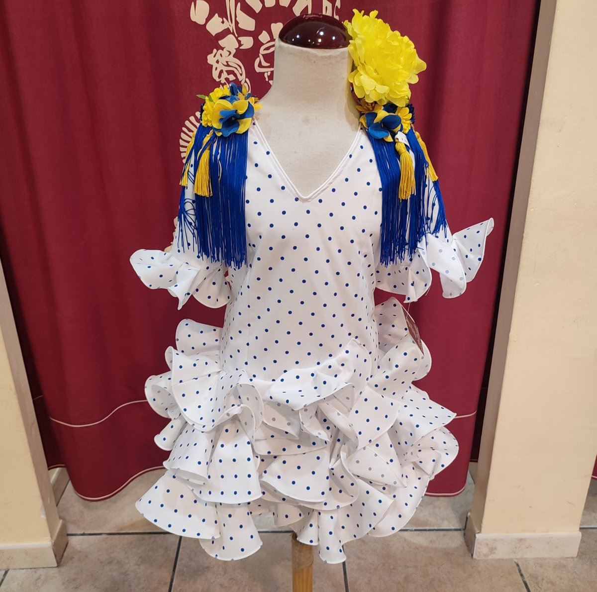 Confeccionado en tela de popelin blanco con lunar azulon.