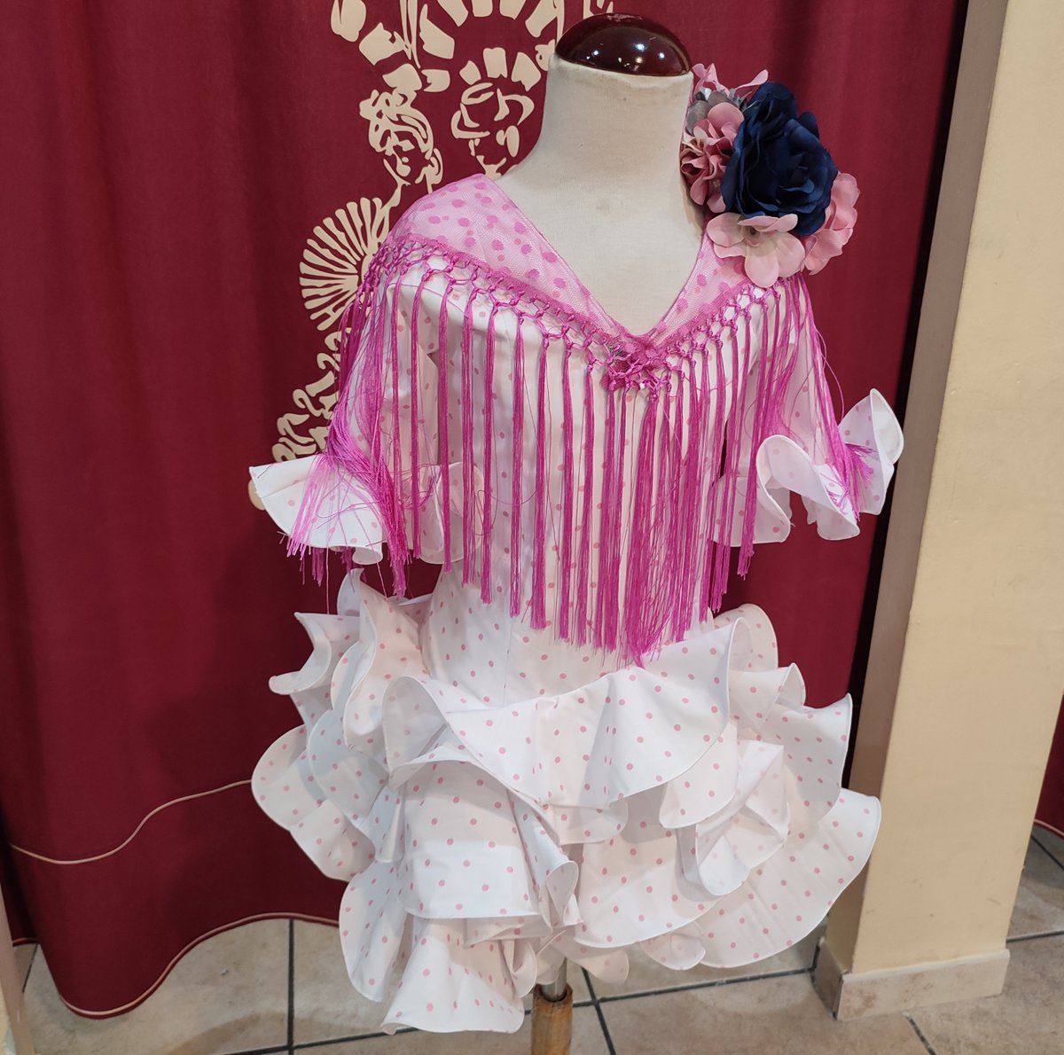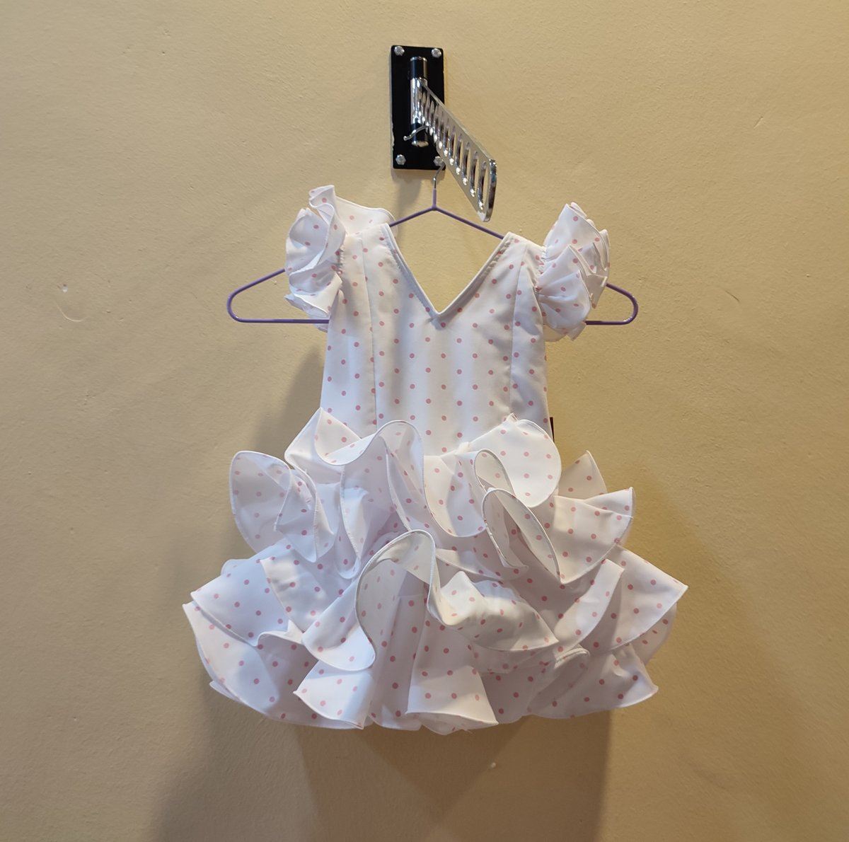 Confeccionado en tela de popelin blanco con lunar rosa bebe.