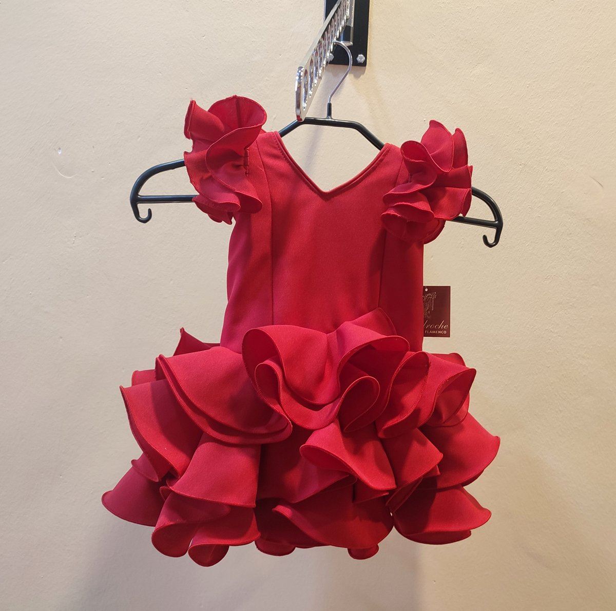 Las tallas 0 y 2 estan confeccionadas sin mangas y con volantes en sisa. El resto de tallas la manga es hasta el codo.