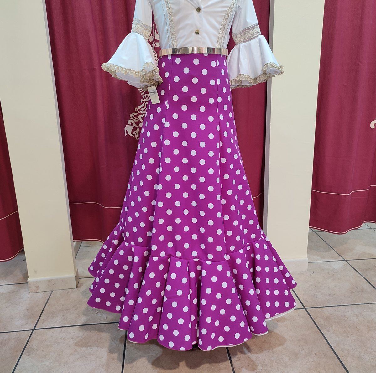 Falda en capa confeccionada en popelin buganvilla con lunar en blanco.