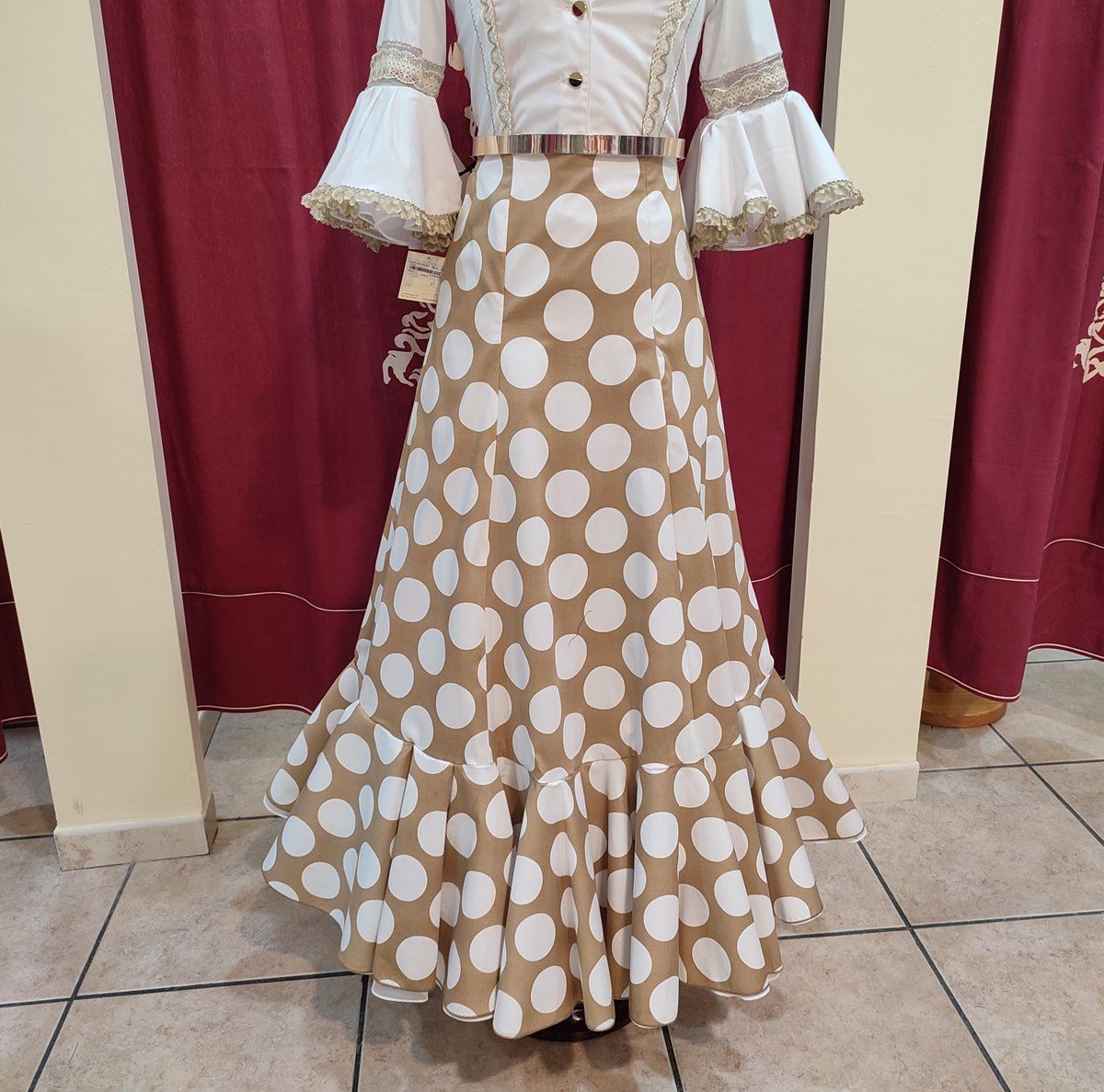 Sé el primero en valorar “Falda Modelo ROMERIA (Talla 40) Camel Lunar Blanco”