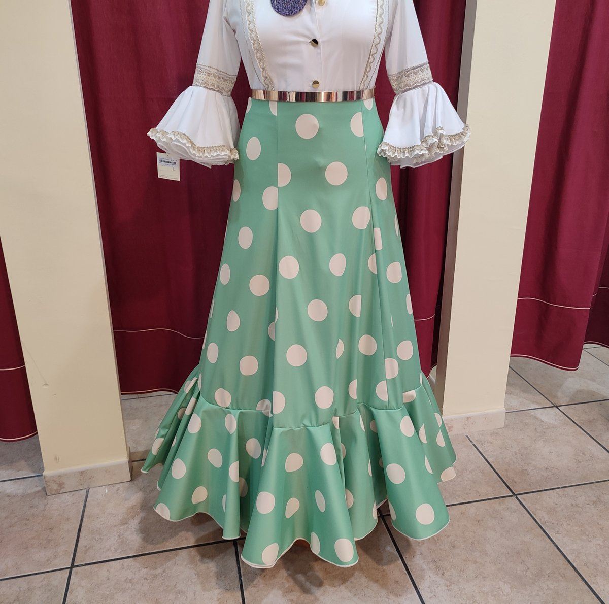 Sé el primero en valorar “Falda Modelo ROMERIA (Talla 46) Verde Agua Lunar Beige”