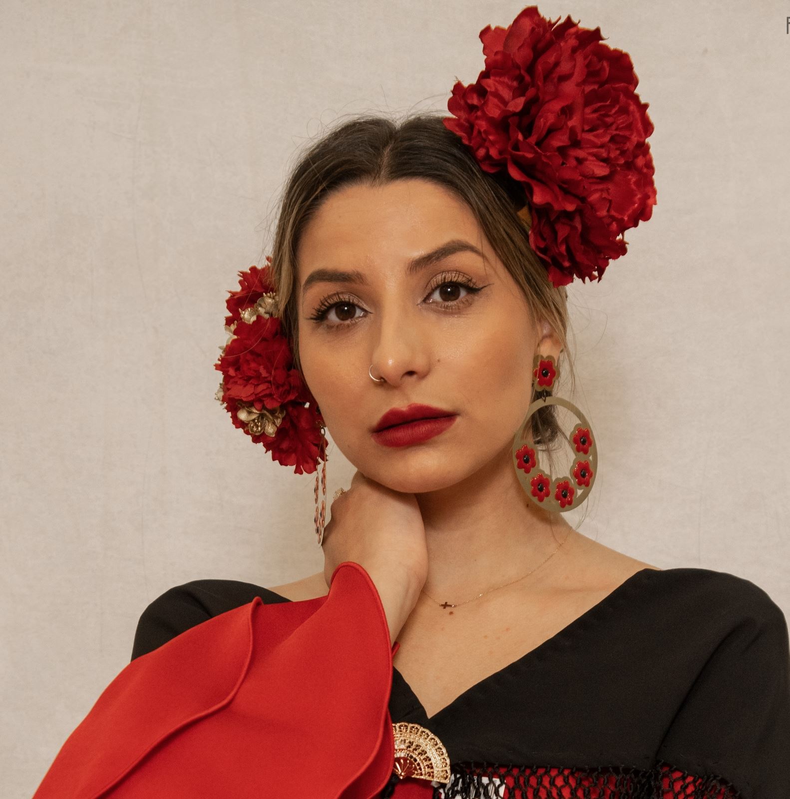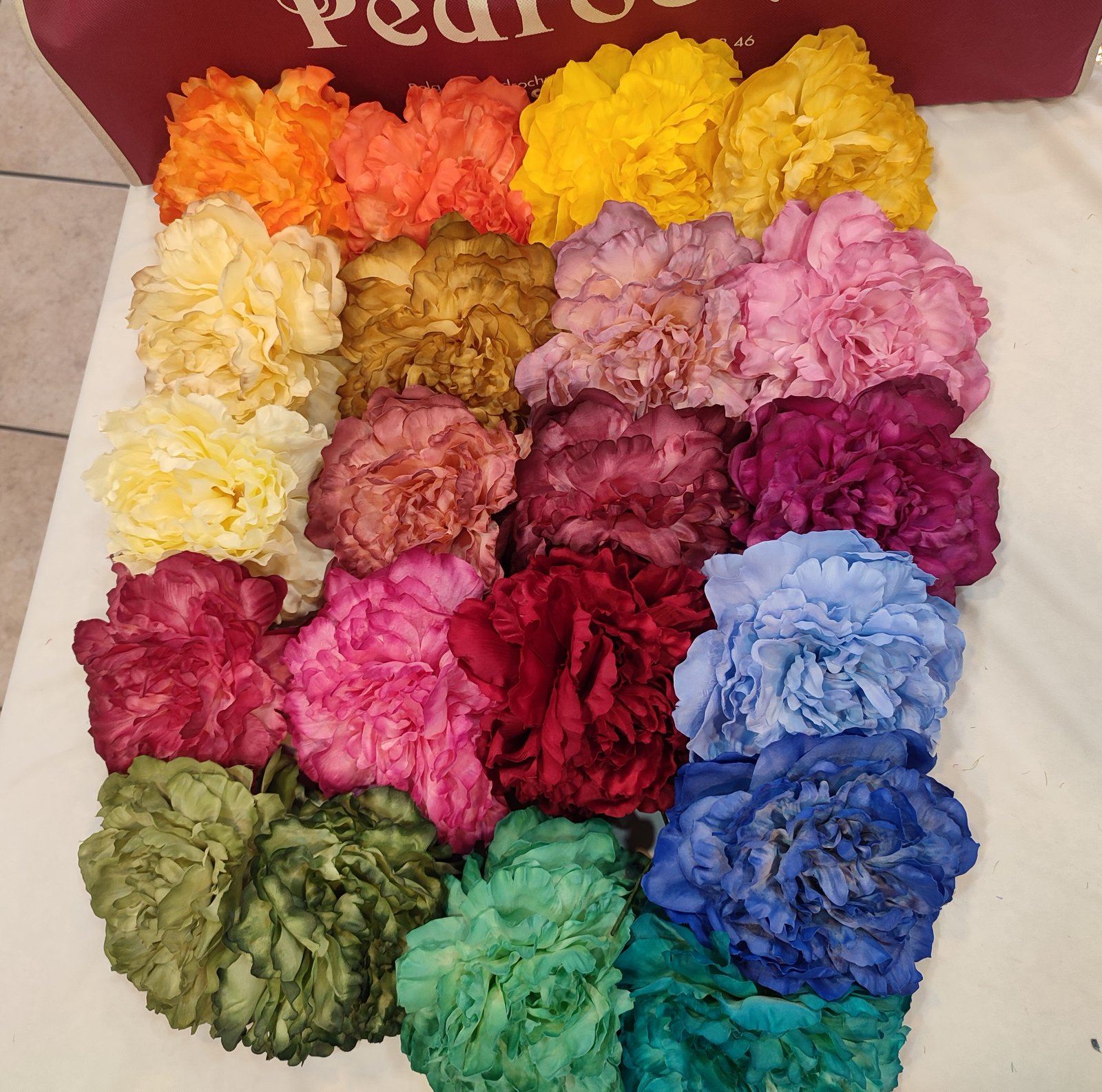 Flor de flamenca. Tamaño grande para señora. Ideal para colocarla sola. Flor en forma de peonia. Colores degradados.