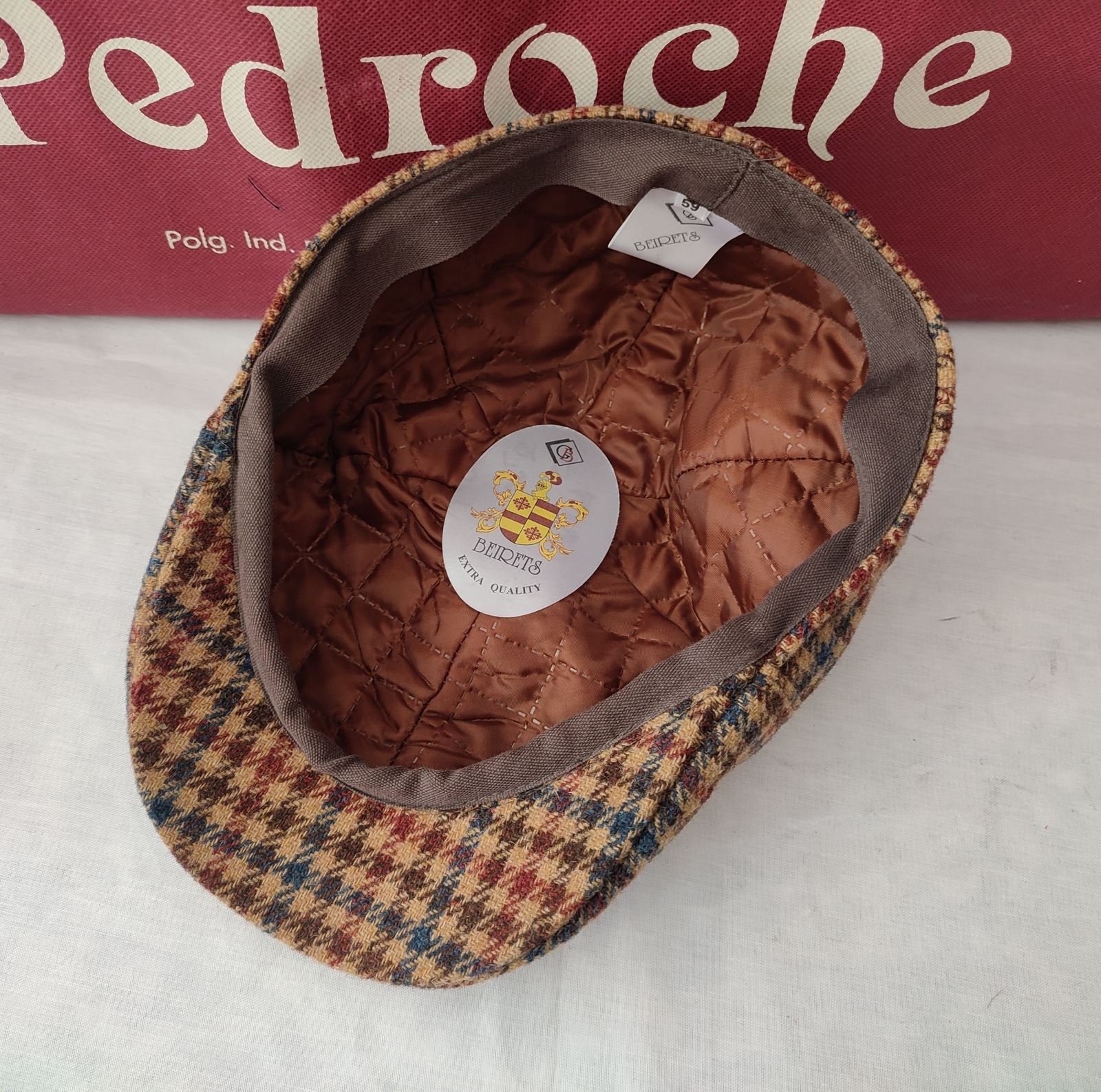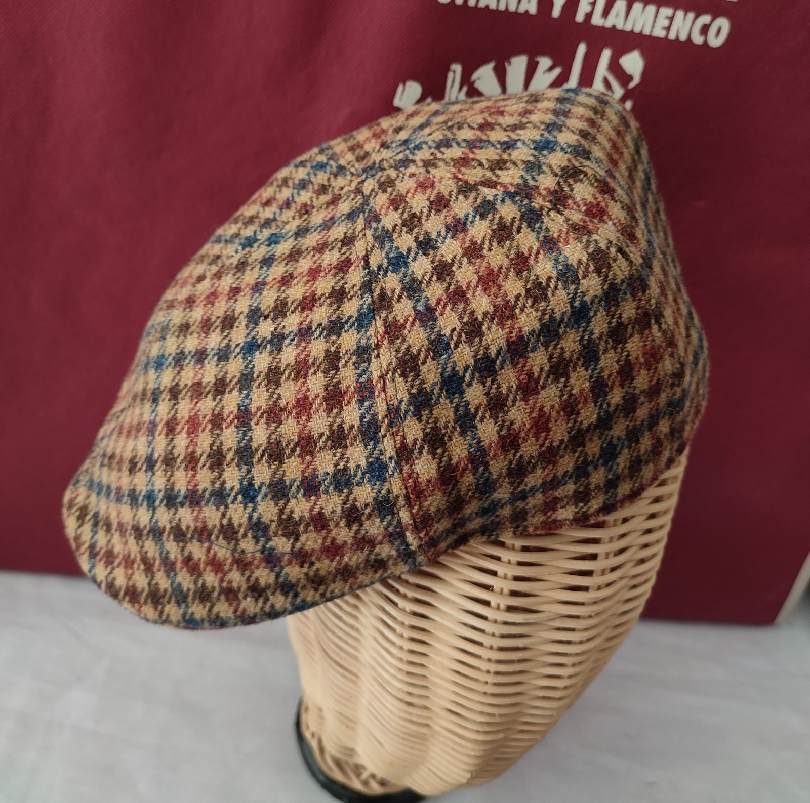 Gorra campera de invierno confeccionada en cuadros de pata de gallo en marron y azul.