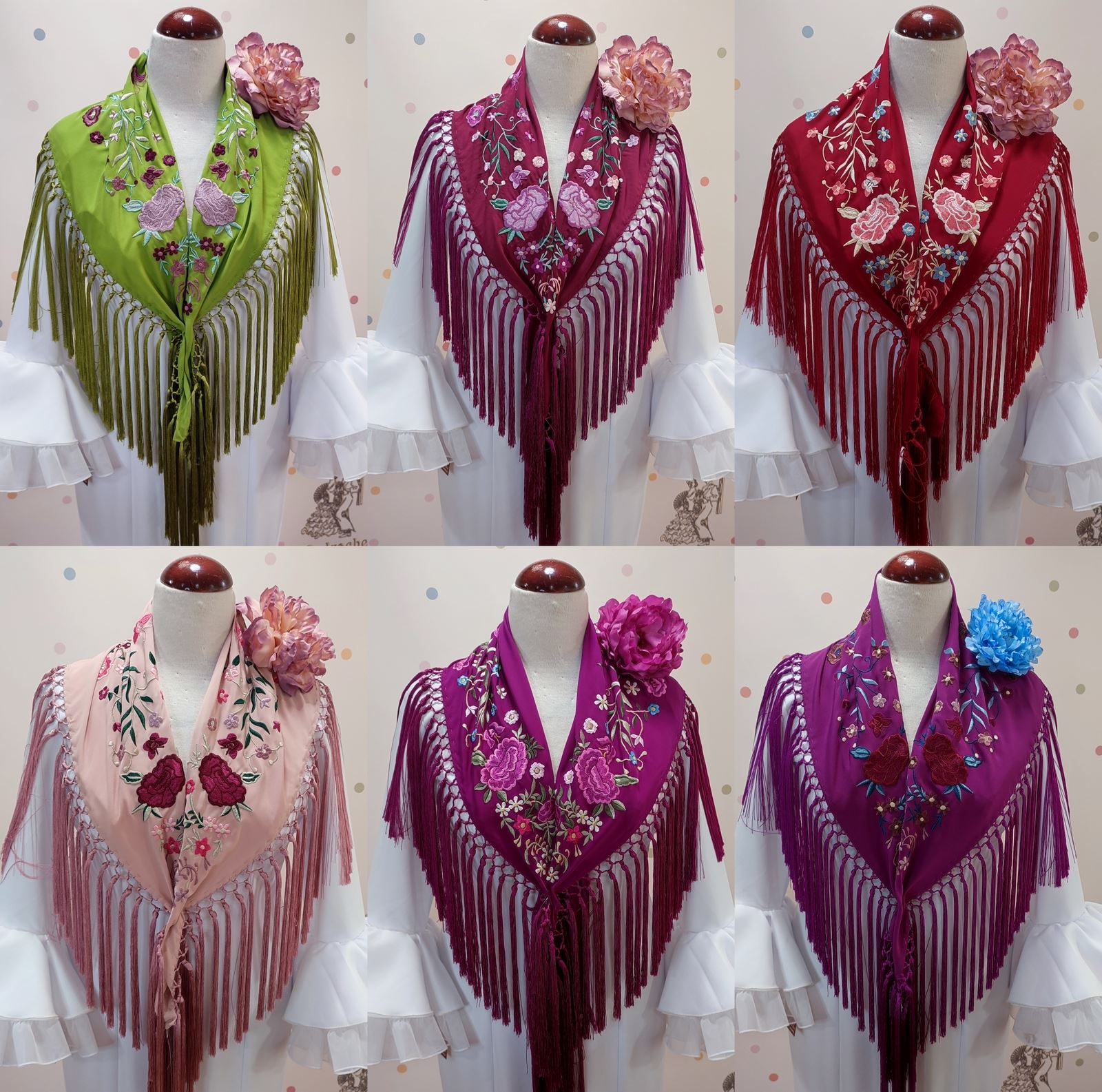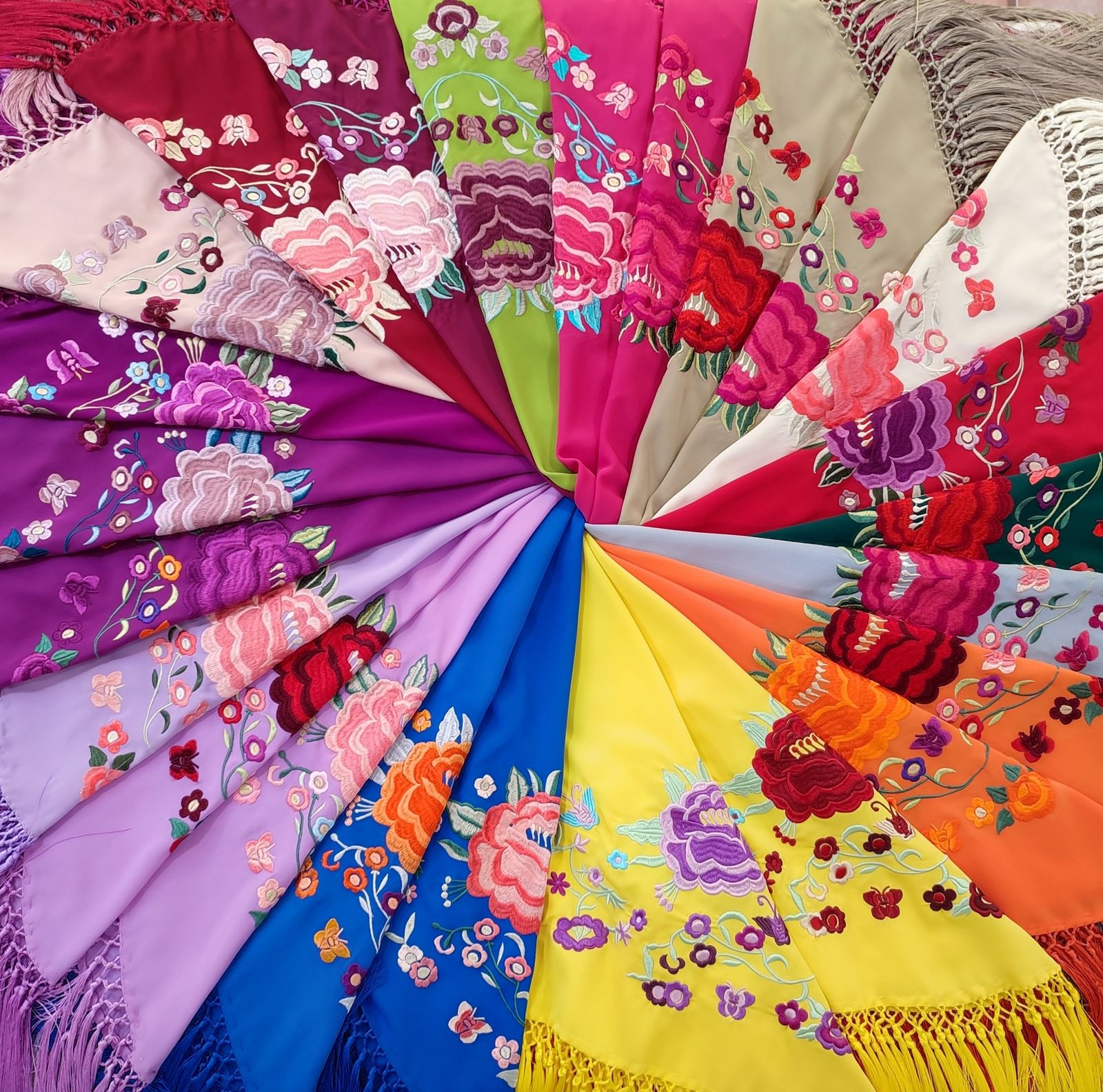 * Cada mantón está elaborado de forma artesanal, por lo que las medidas pueden variar ligeramente según el color. Si deseas conocer la medida exacta, no dudes en consultarnos.