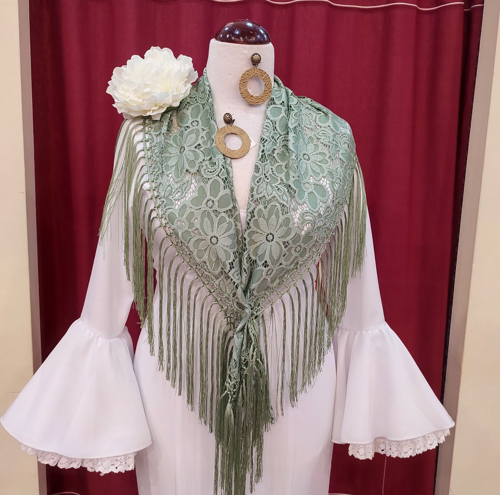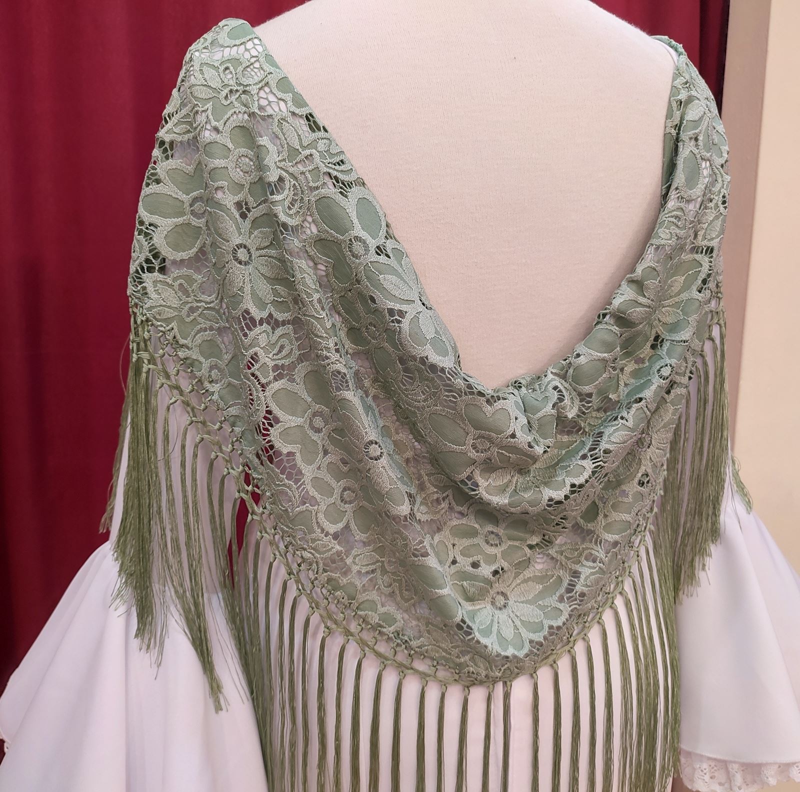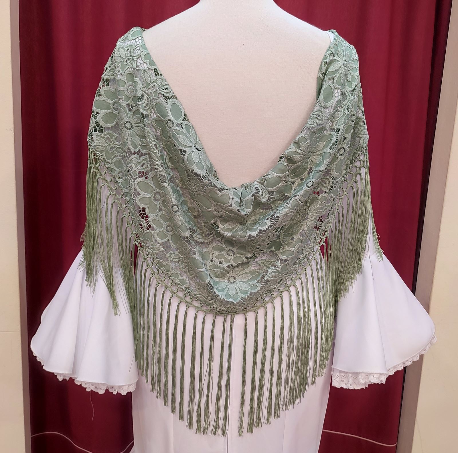 Manton de flamenca. Confeccionado en tela de encaje con dibujos de flores.