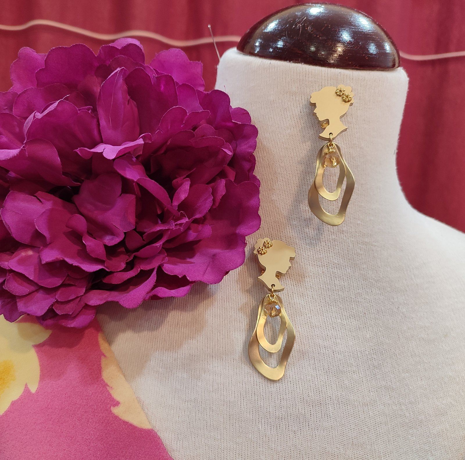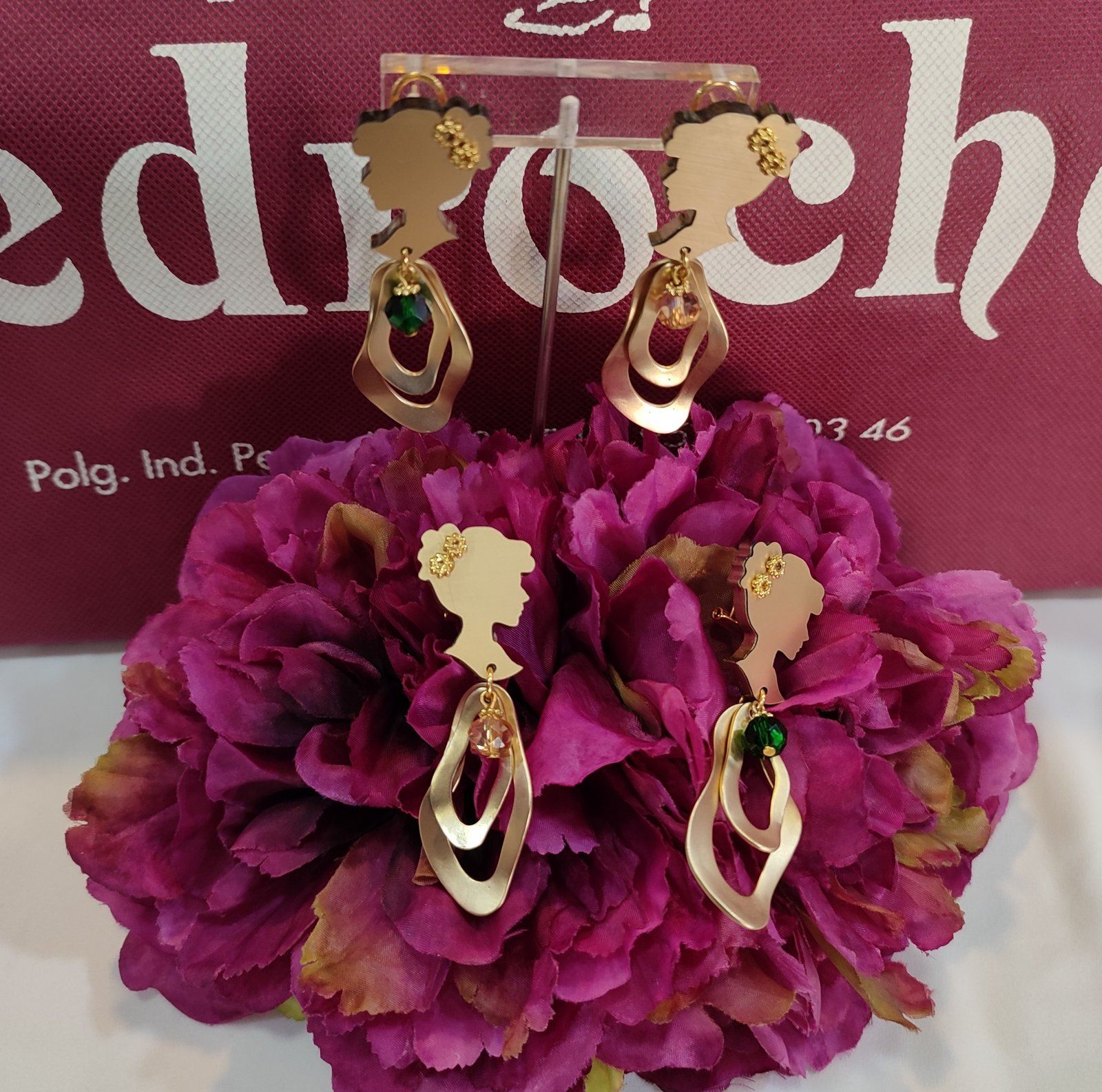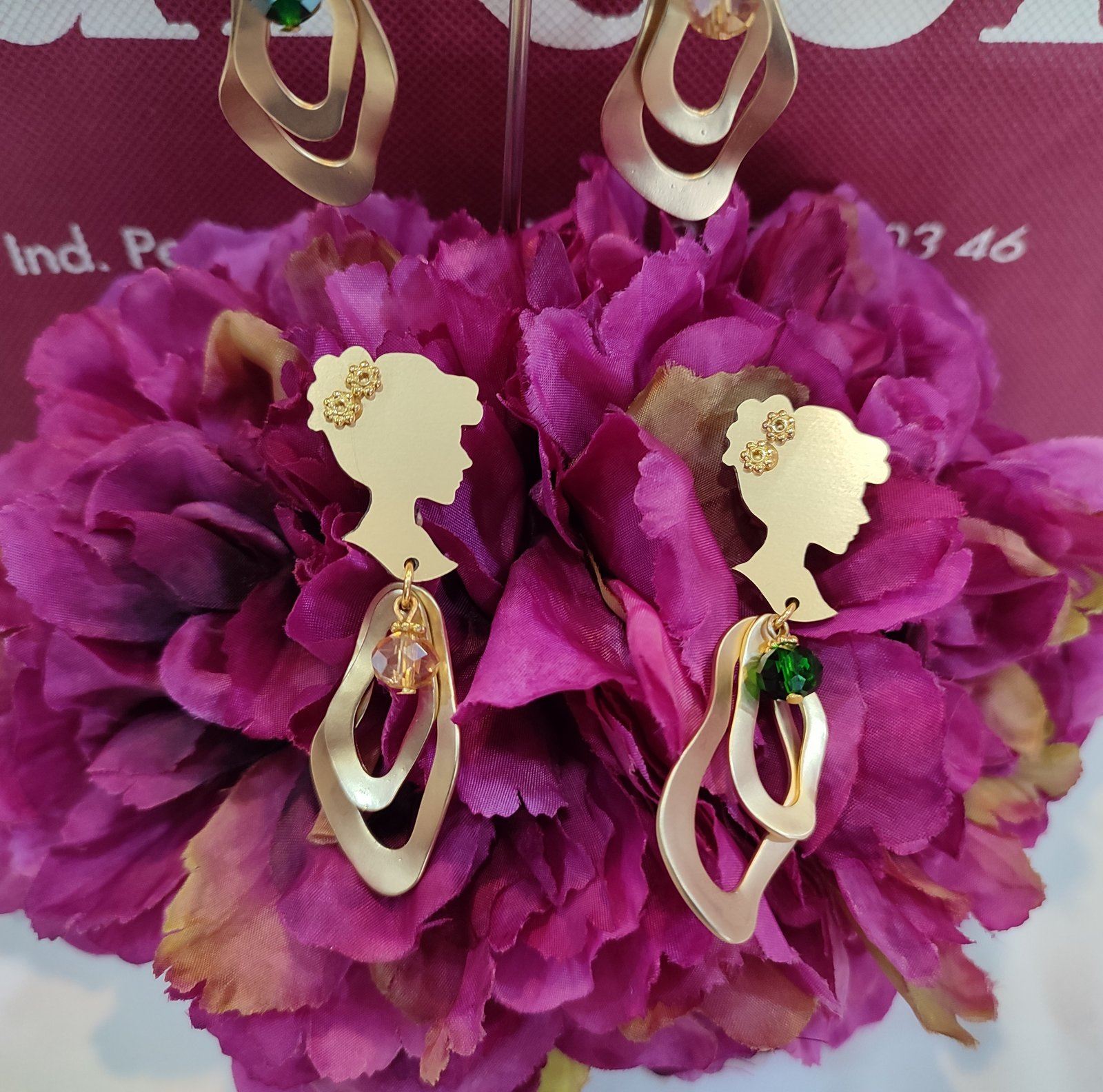 Adorno en forma de camafeo con dos ondas y adorno de bola, disponible en botella o dorado.