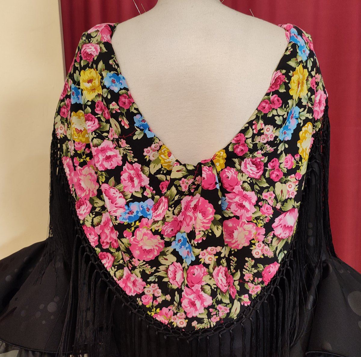 Confeccionado en estampado en tonos rosas sobre fondo negro