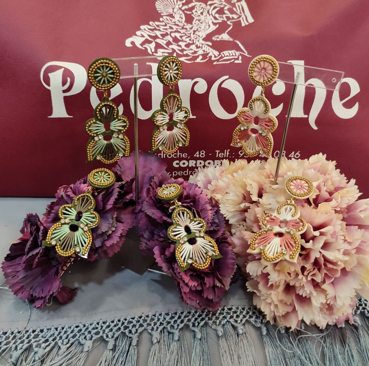 Fabricado en acetato con adornos en hilo y adornos dorados.