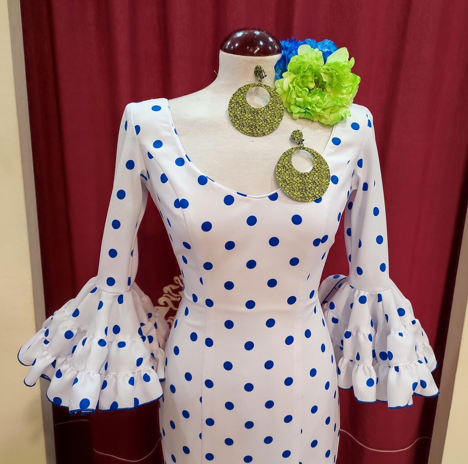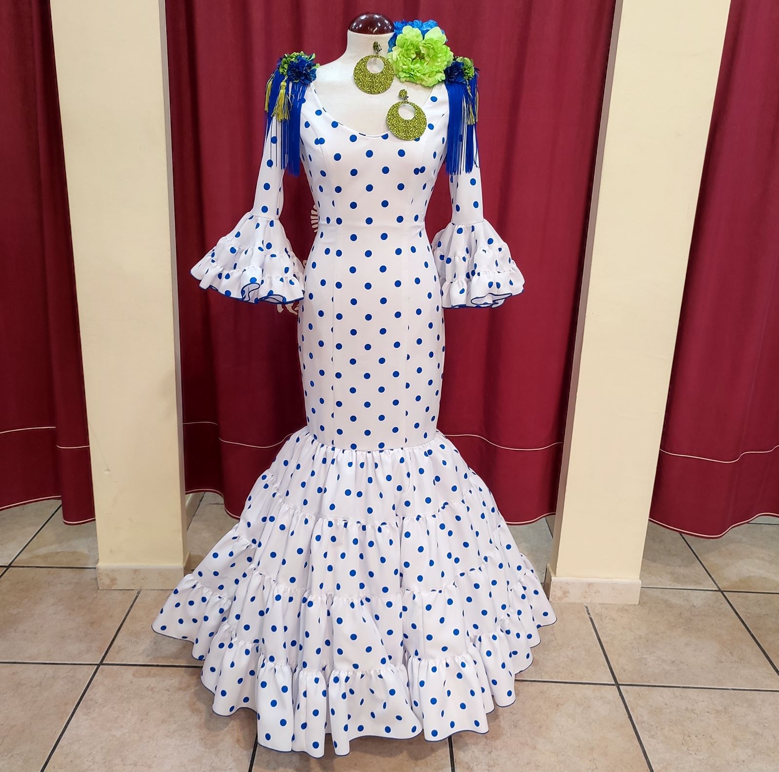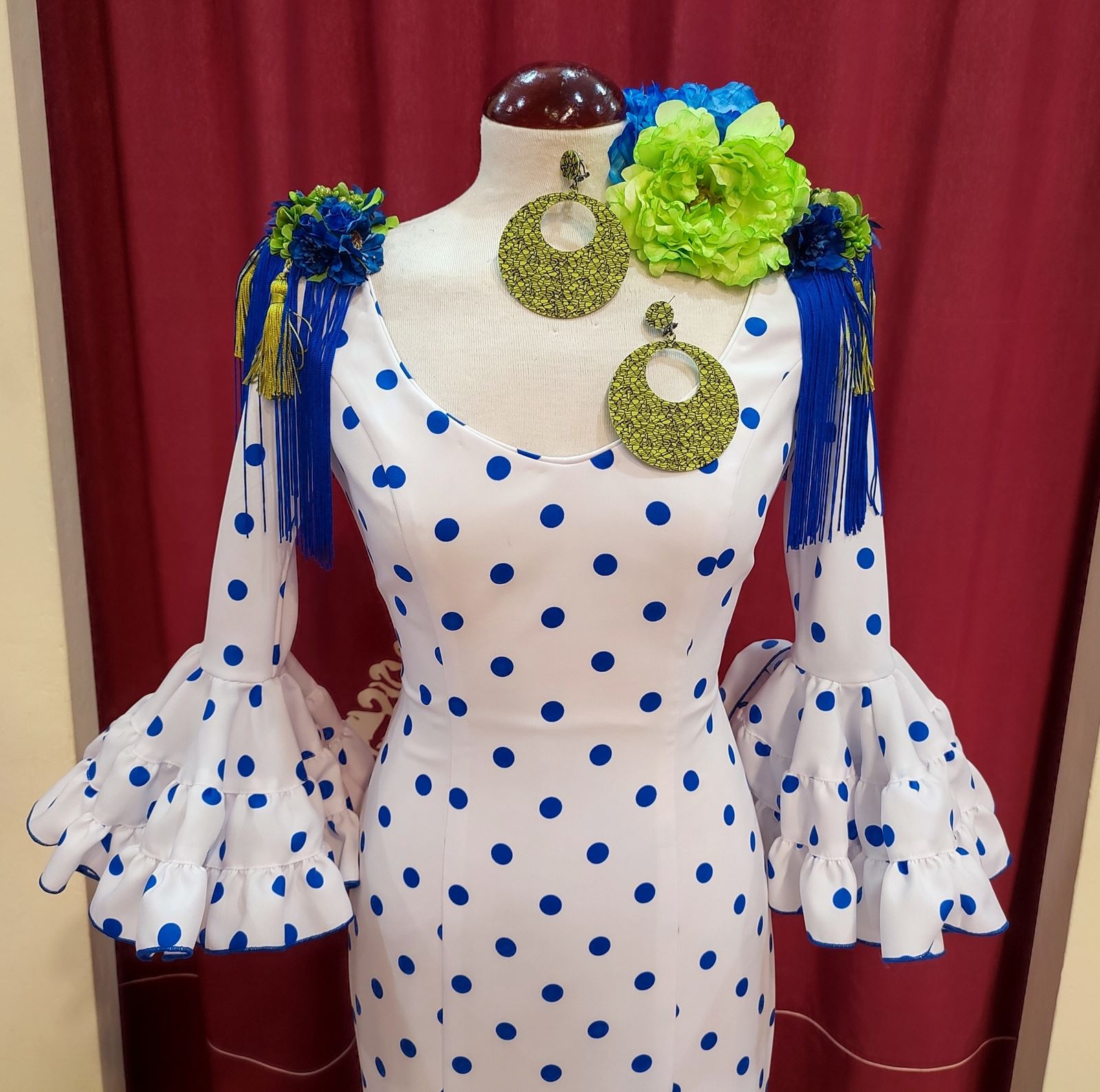 Canastero confeccionado en tela de strech en blanco con lunar azulon.