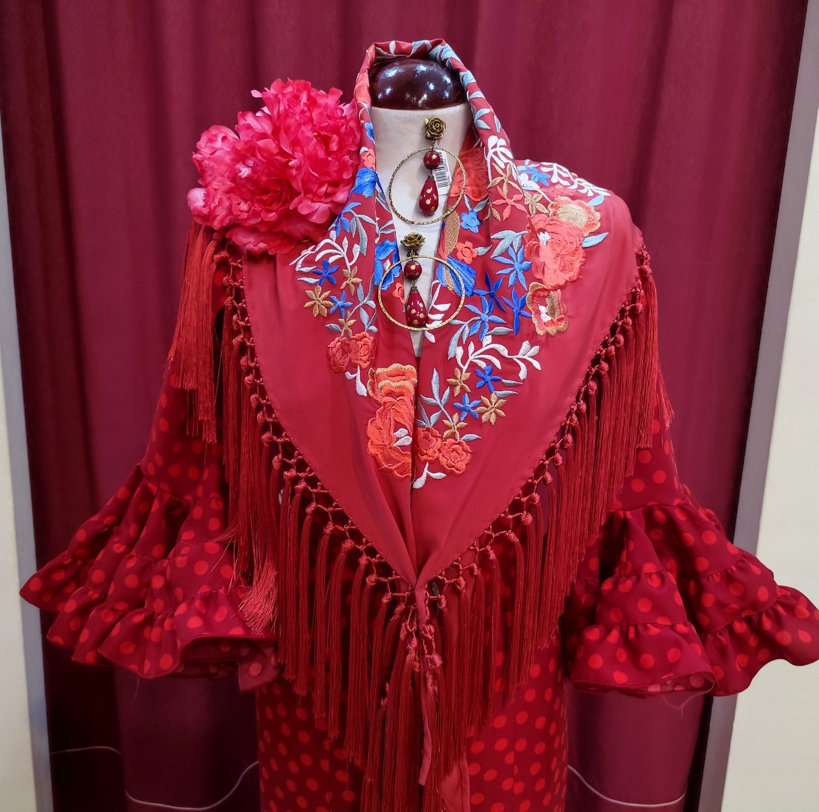 Canastero confeccionado en tela de strech en rojo con lunar coral.