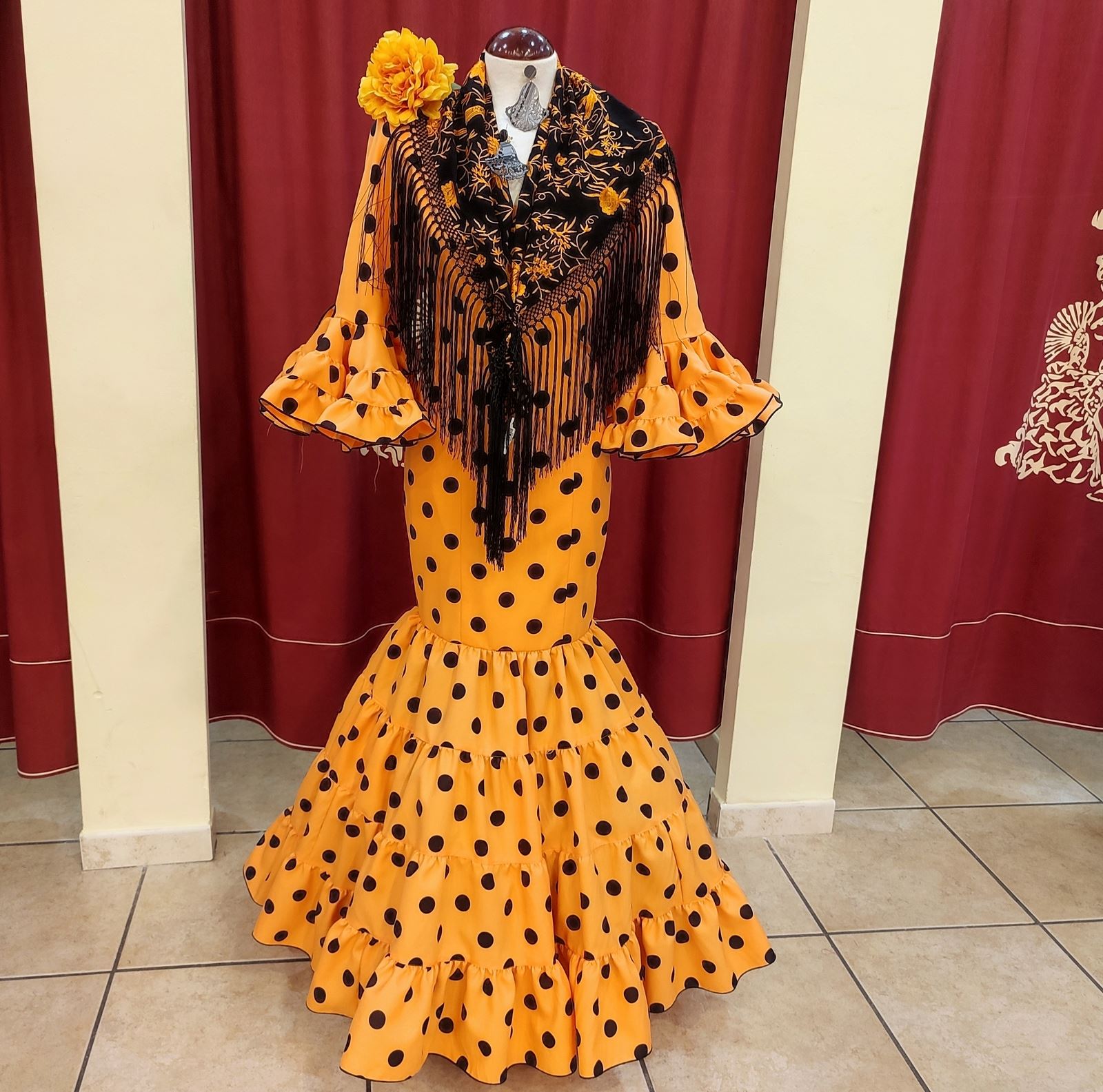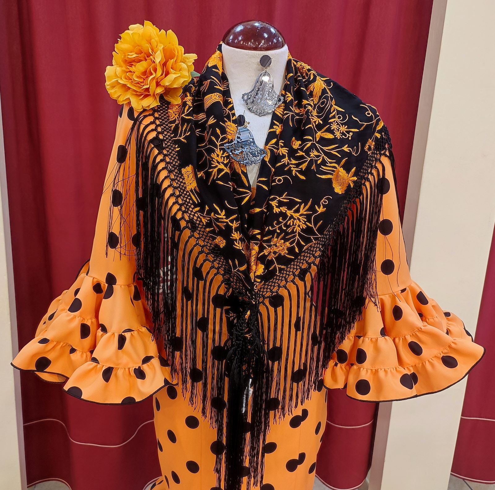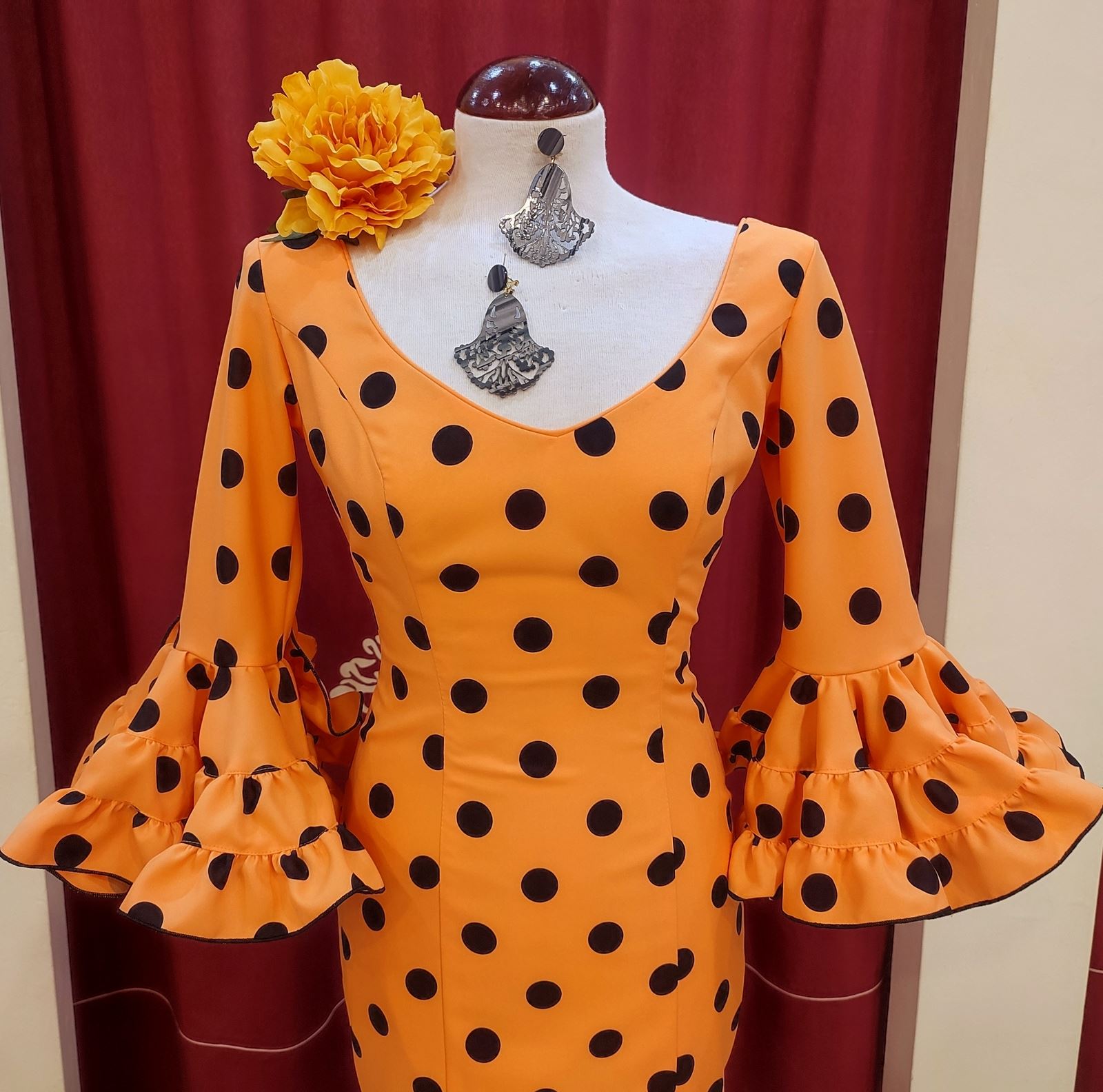 Canastero confeccionado en tela de strech en mandarina con lunar negro.