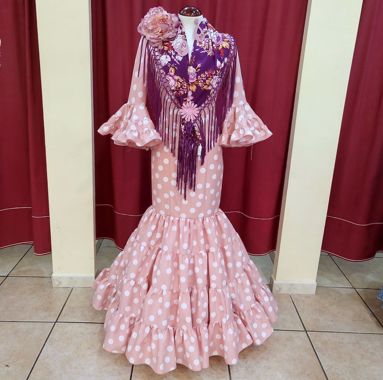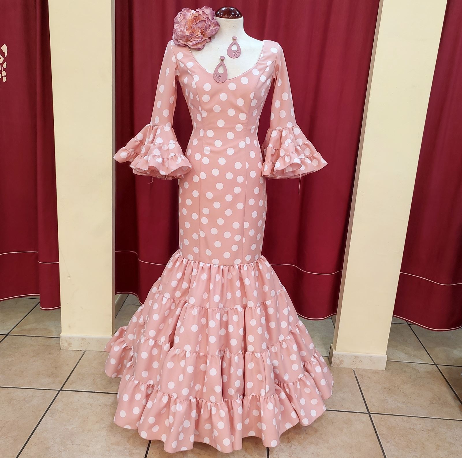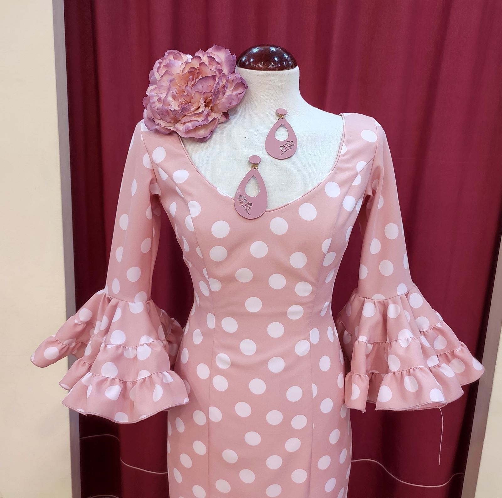 Canastero confeccionado en tela de strech en rosa nude con lunar blanco.
