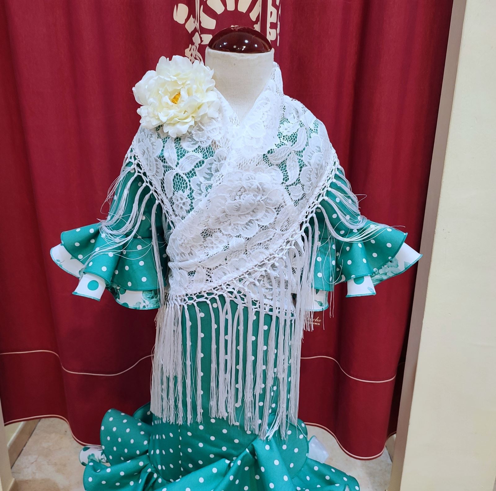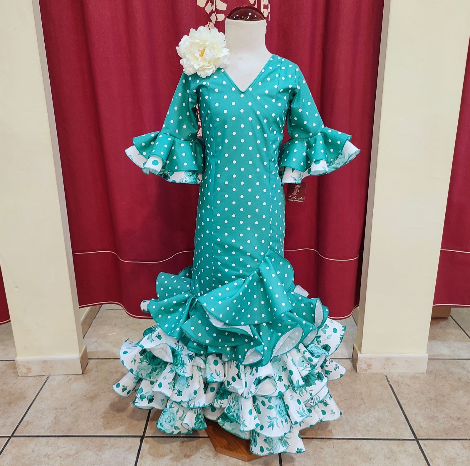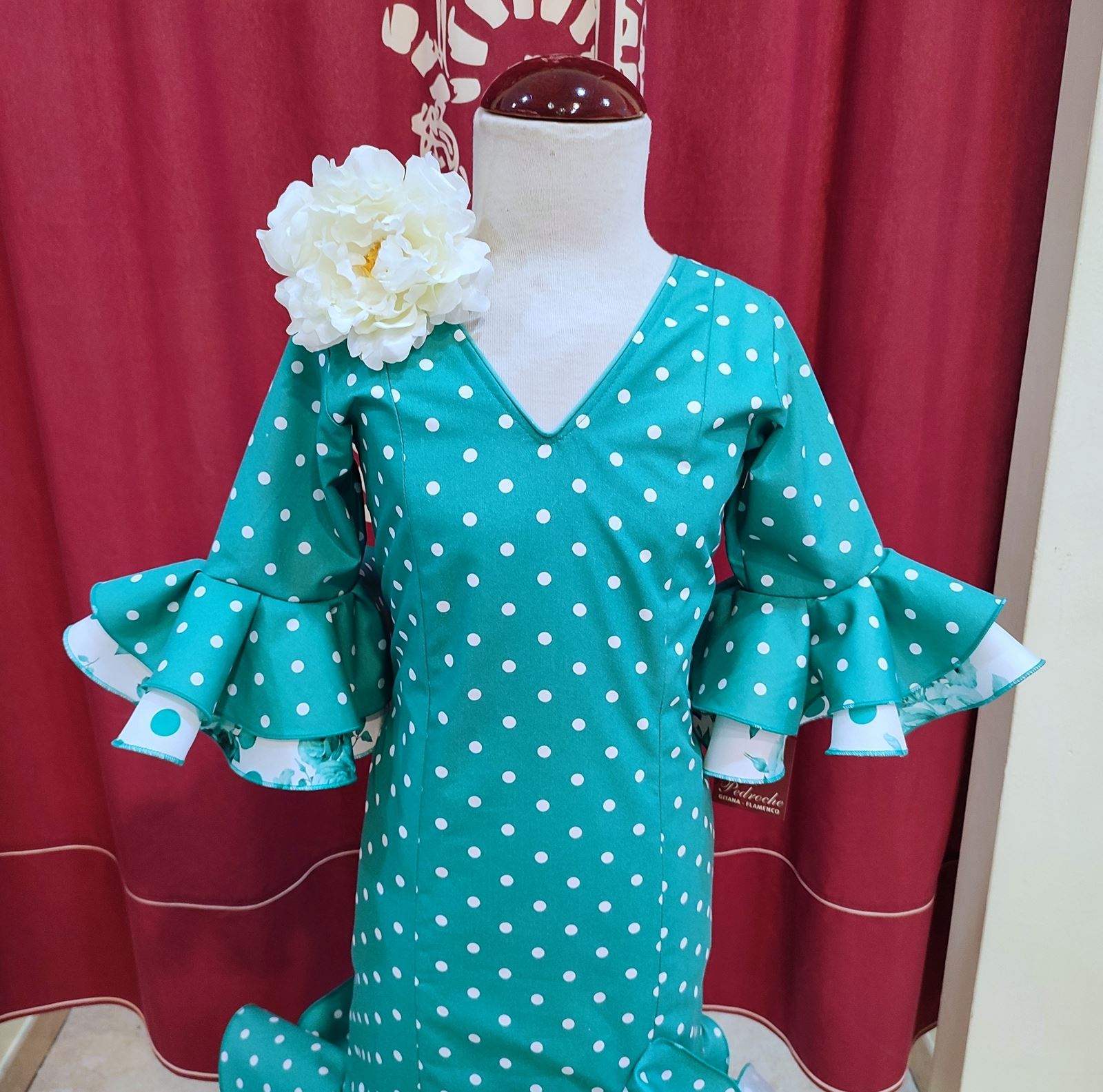 Confeccionado en tela de popelin aguamarina con lunar medio blanco.