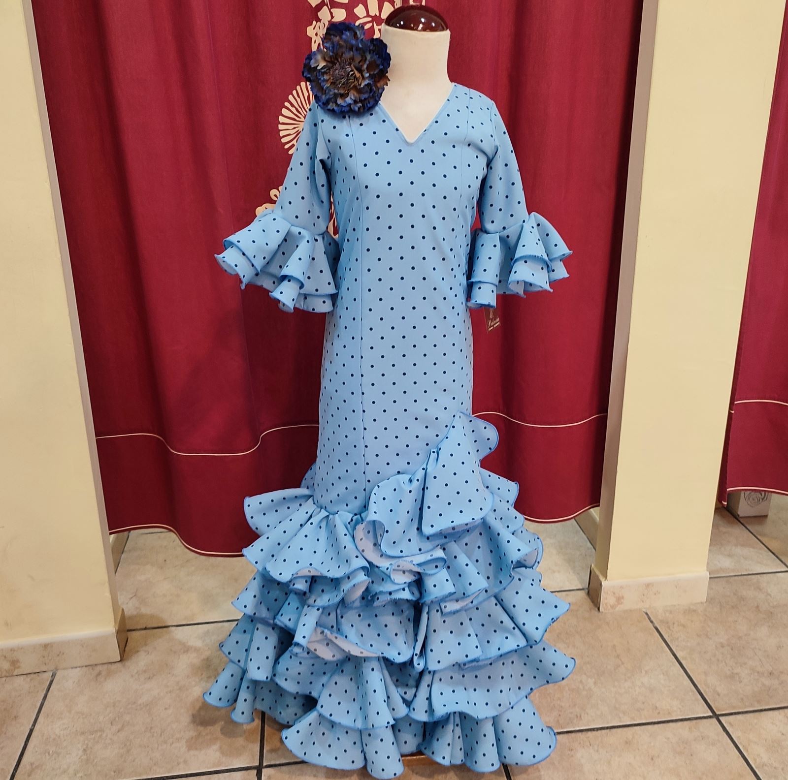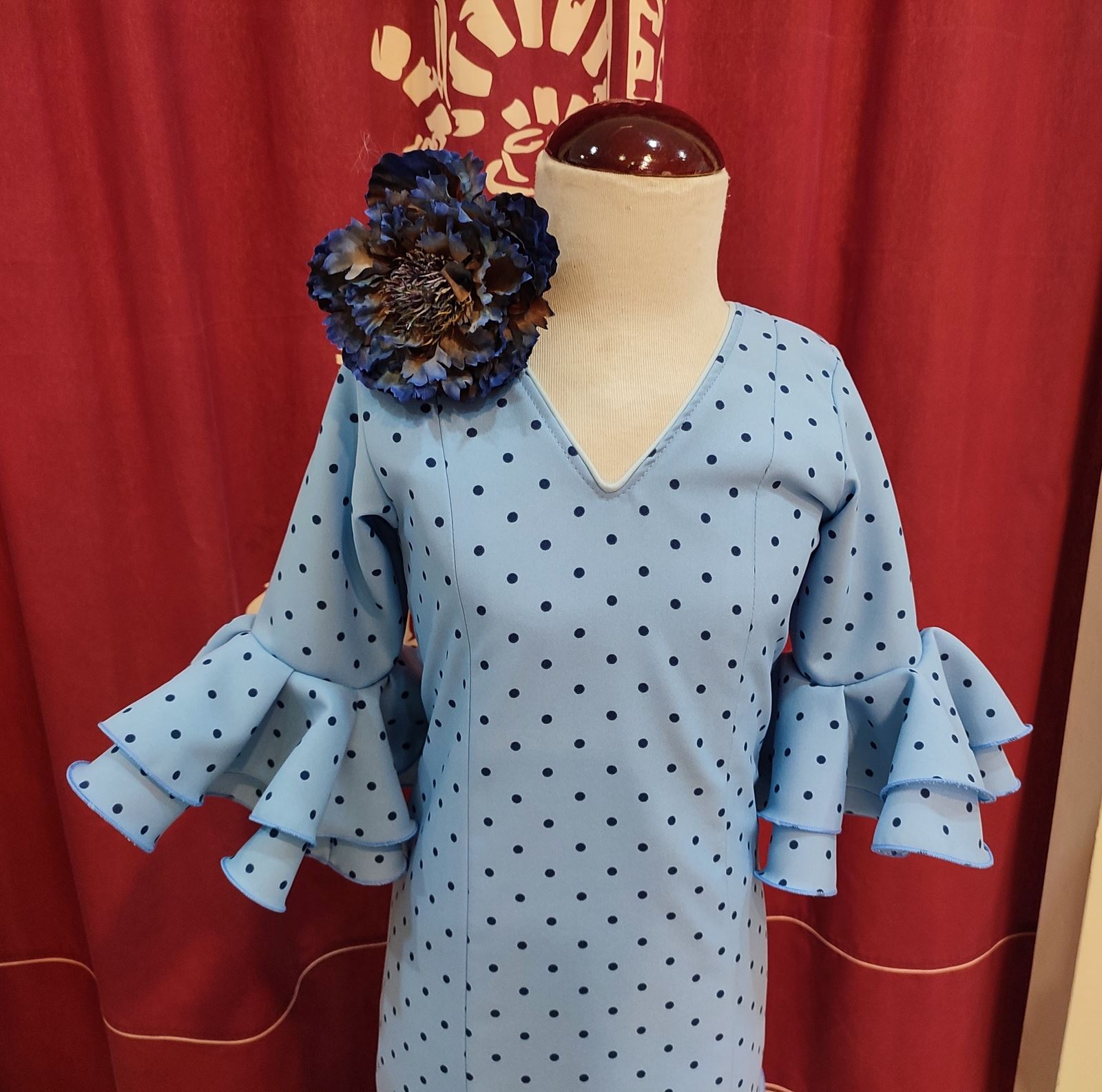 Vestido confeccionado en tela de strech celeste con lunar marino.