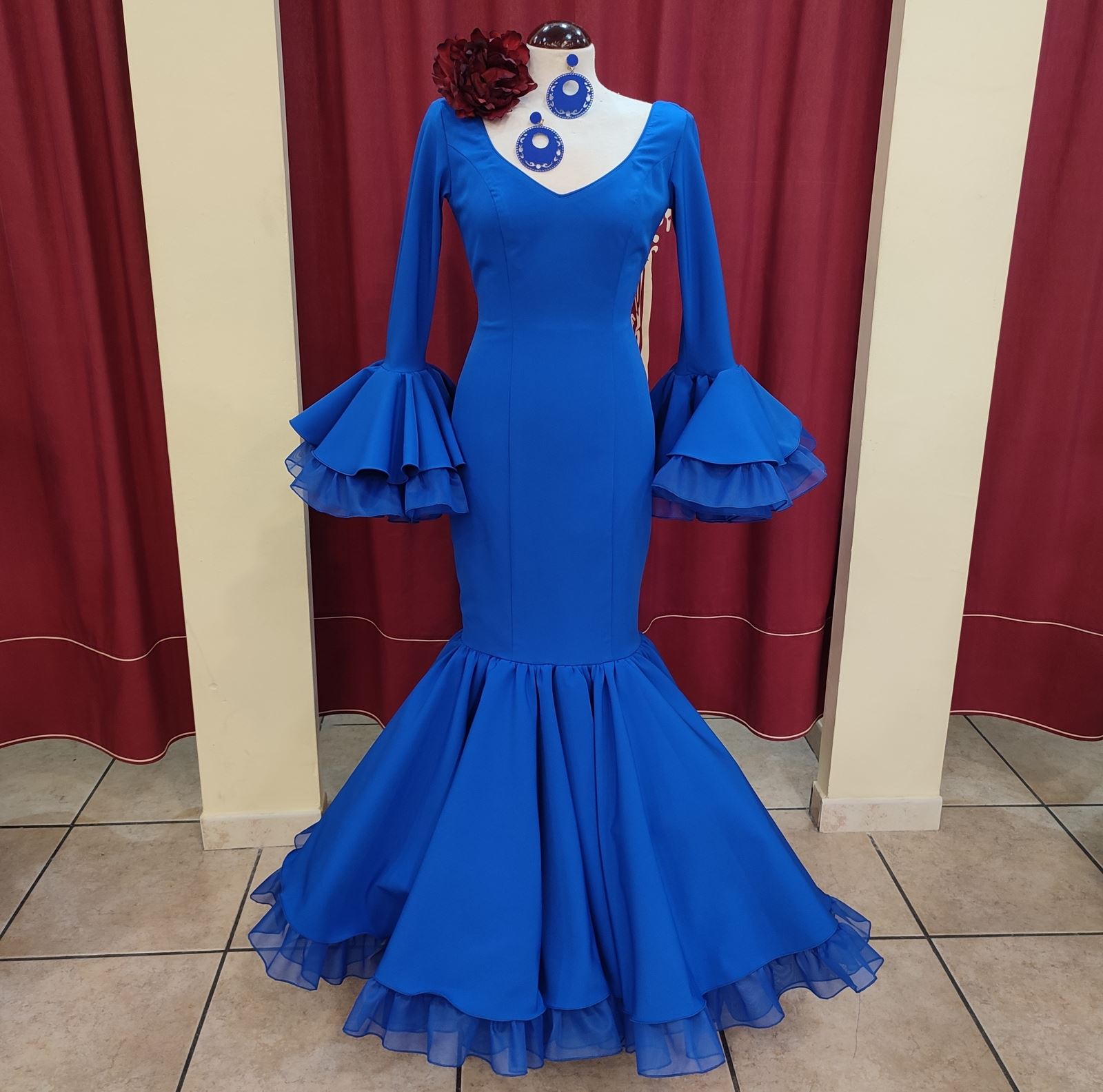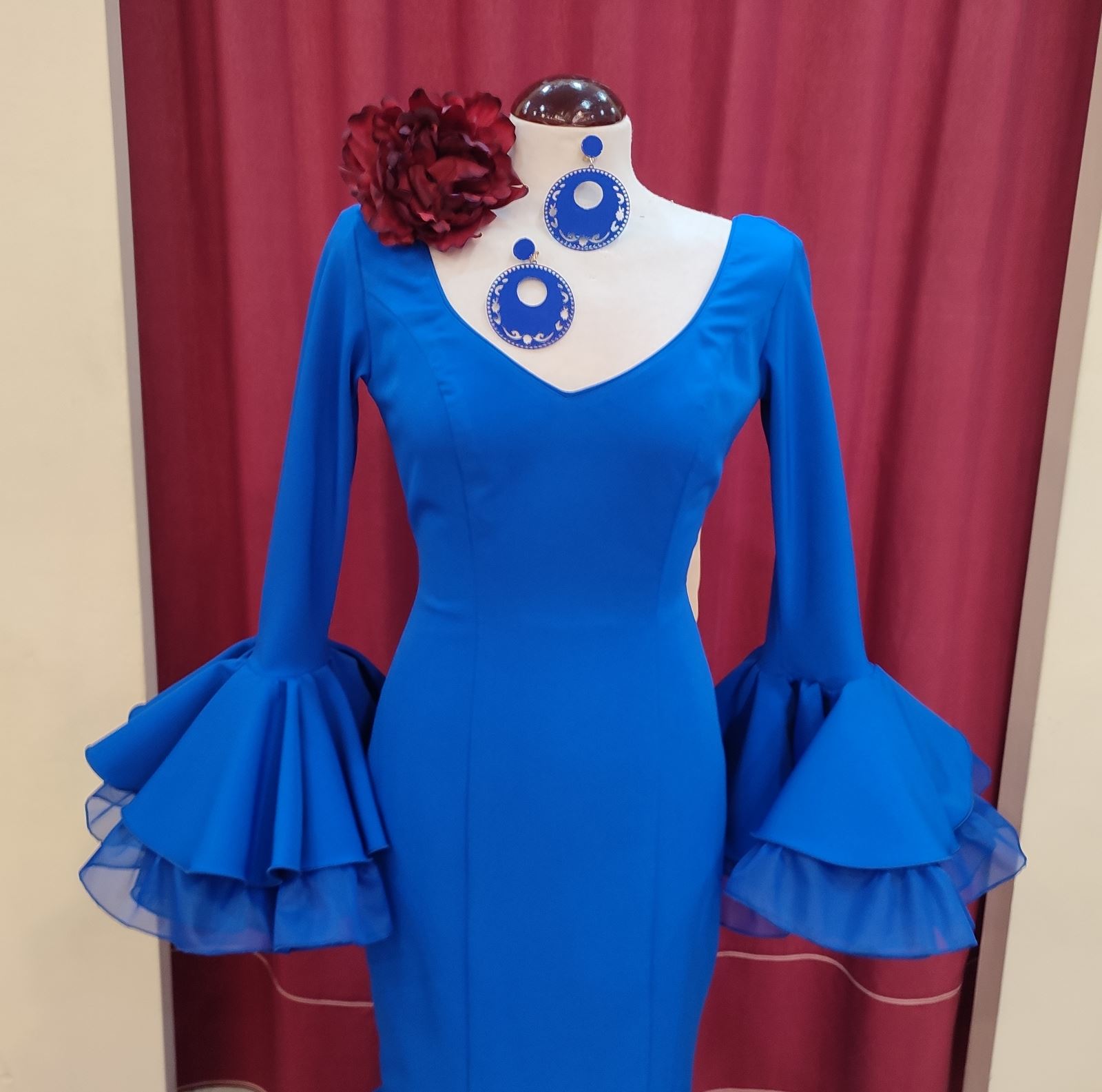 Vestido confeccionado en tela bioelastica en color azulon.