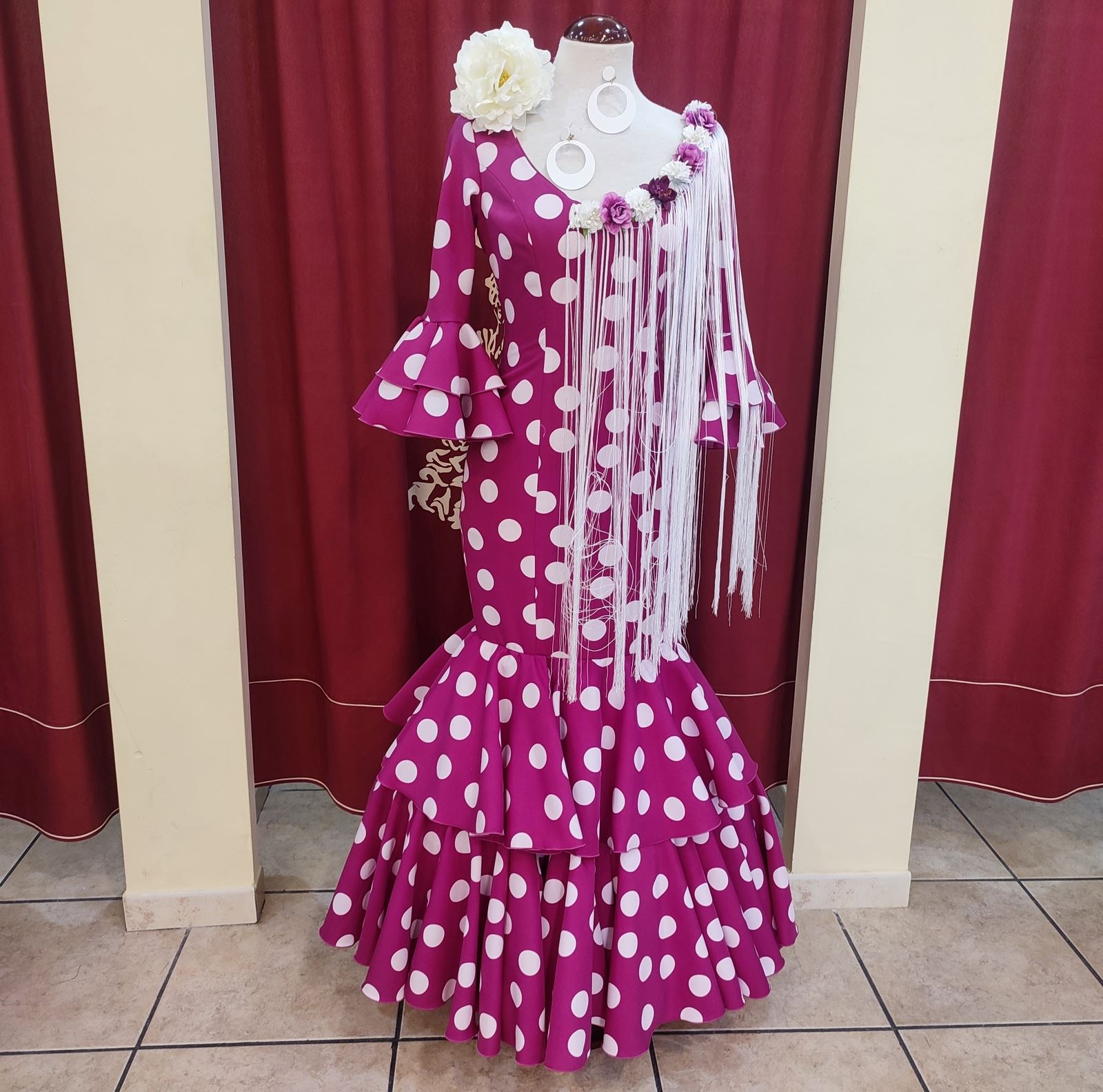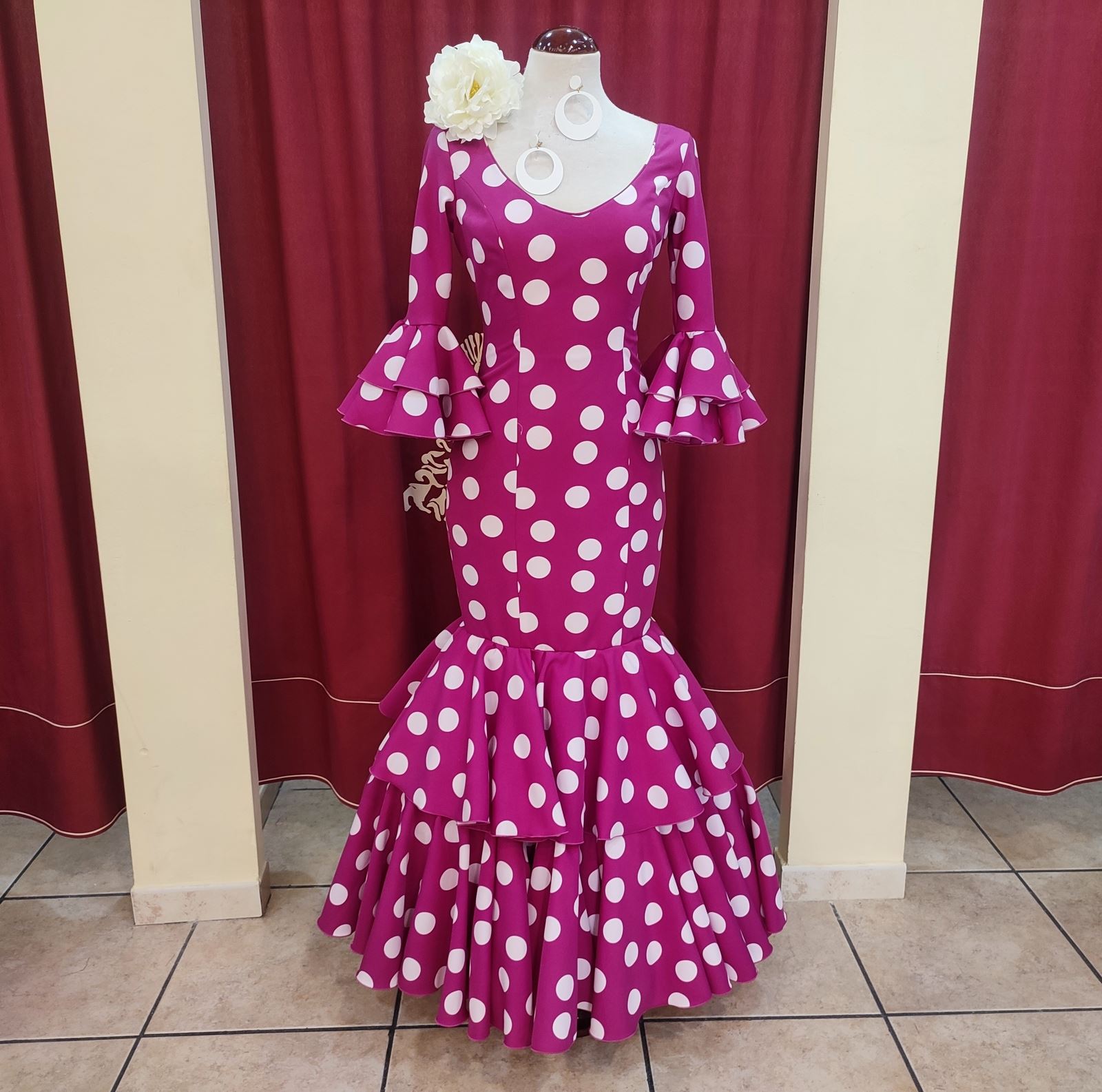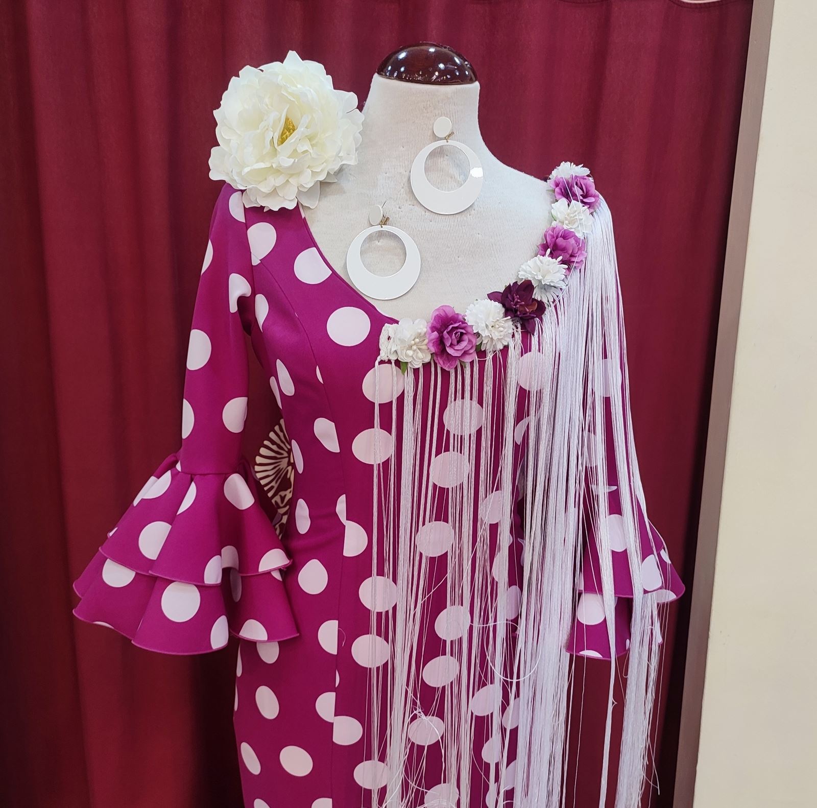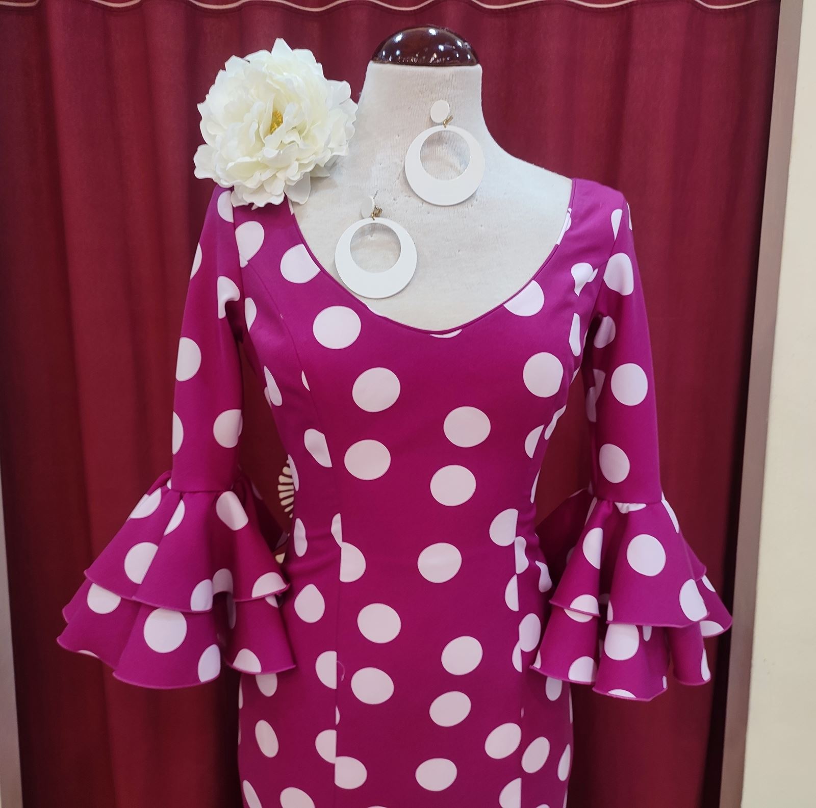Confeccionado en tela de strech en buganvilla claro con lunar blanco.