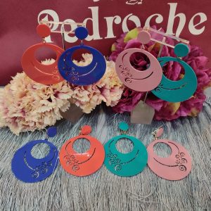 Canastero confeccionado en aguamarina con lunar mas oscuro y adornos en rojo.