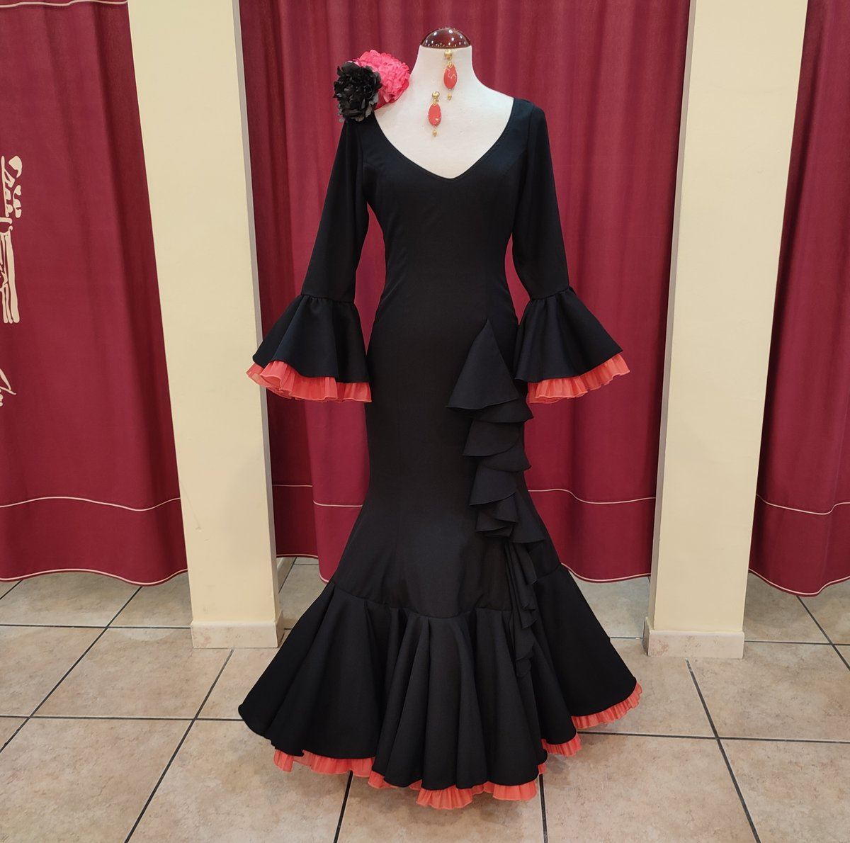 Vestido con corte de godet confeccionado en tela de strech en color negro.