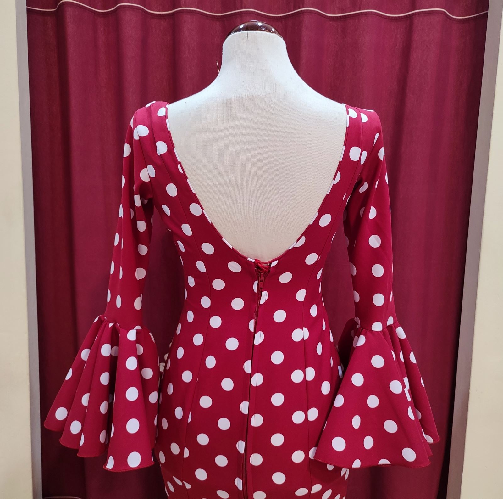 Vestido confeccionado en tela strech en color rojo con lunar blanco.