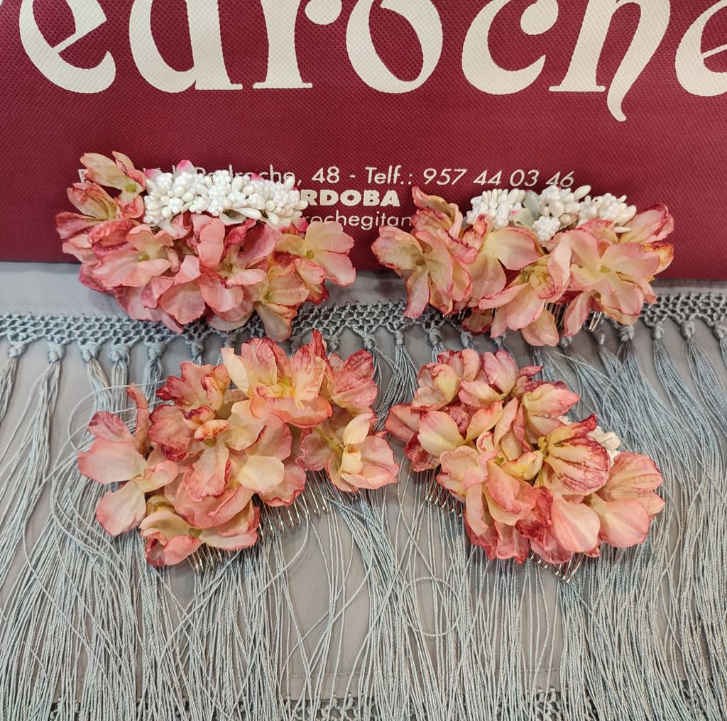 Peinecillo con flores en tonos maquillajes y corales.