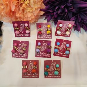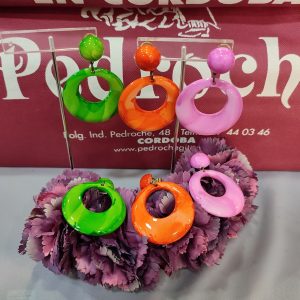 Pendiente de aro fino dorado con adornos de bolitas en colores.
