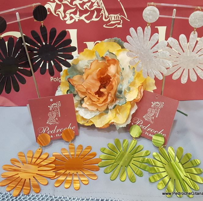 Pendiente Modelo Flor Nacarado.Tamaño señora.Largo: 6 cm