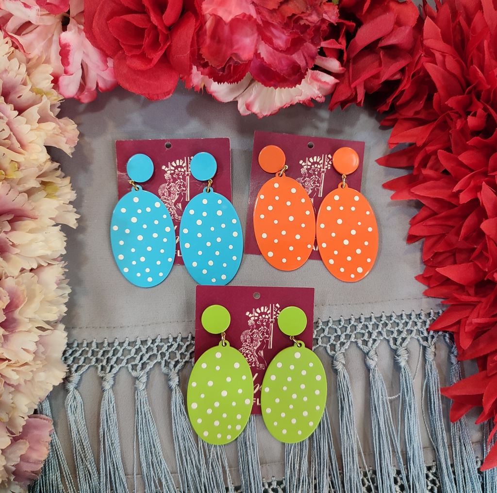 Fabricado en acetato de varios colores con lunares pintados en blanco.