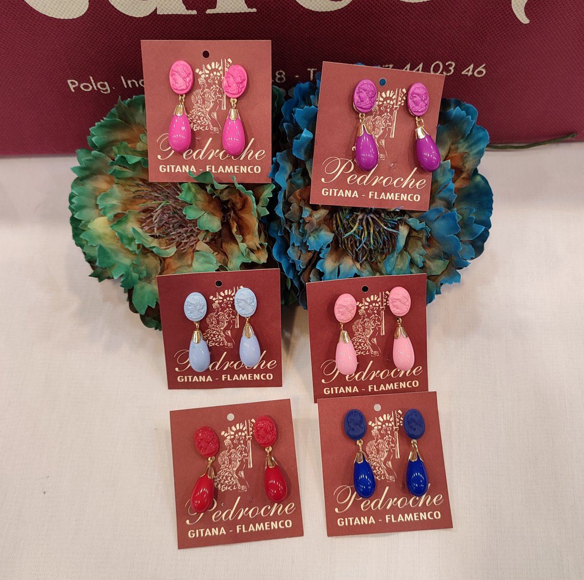 Pendiente en forma de lagrima con adorno de camafeo.