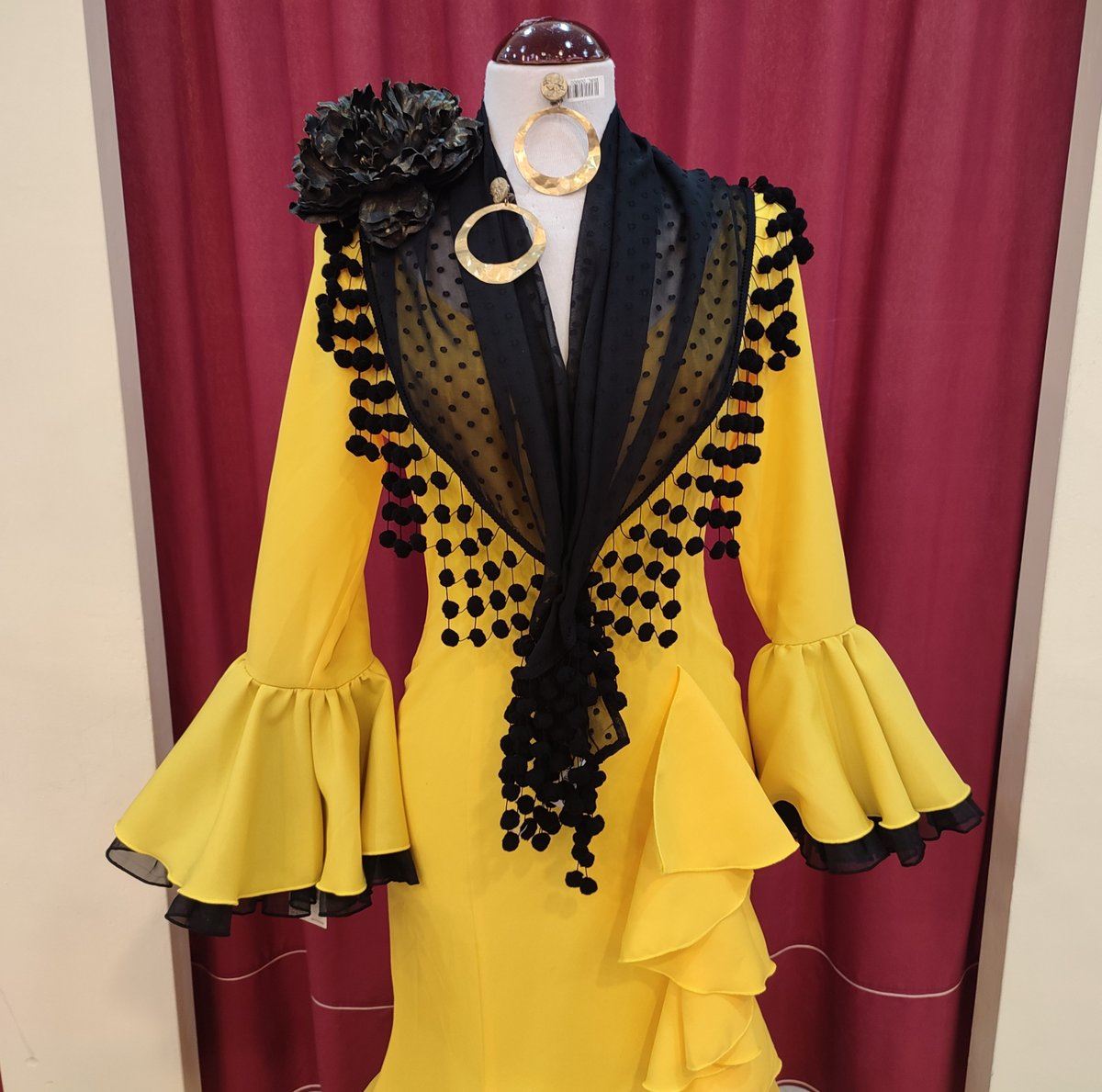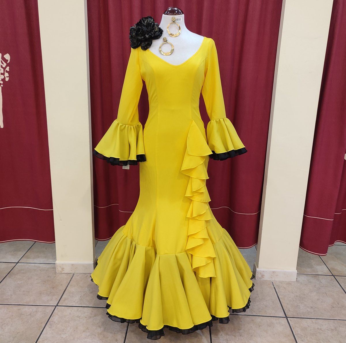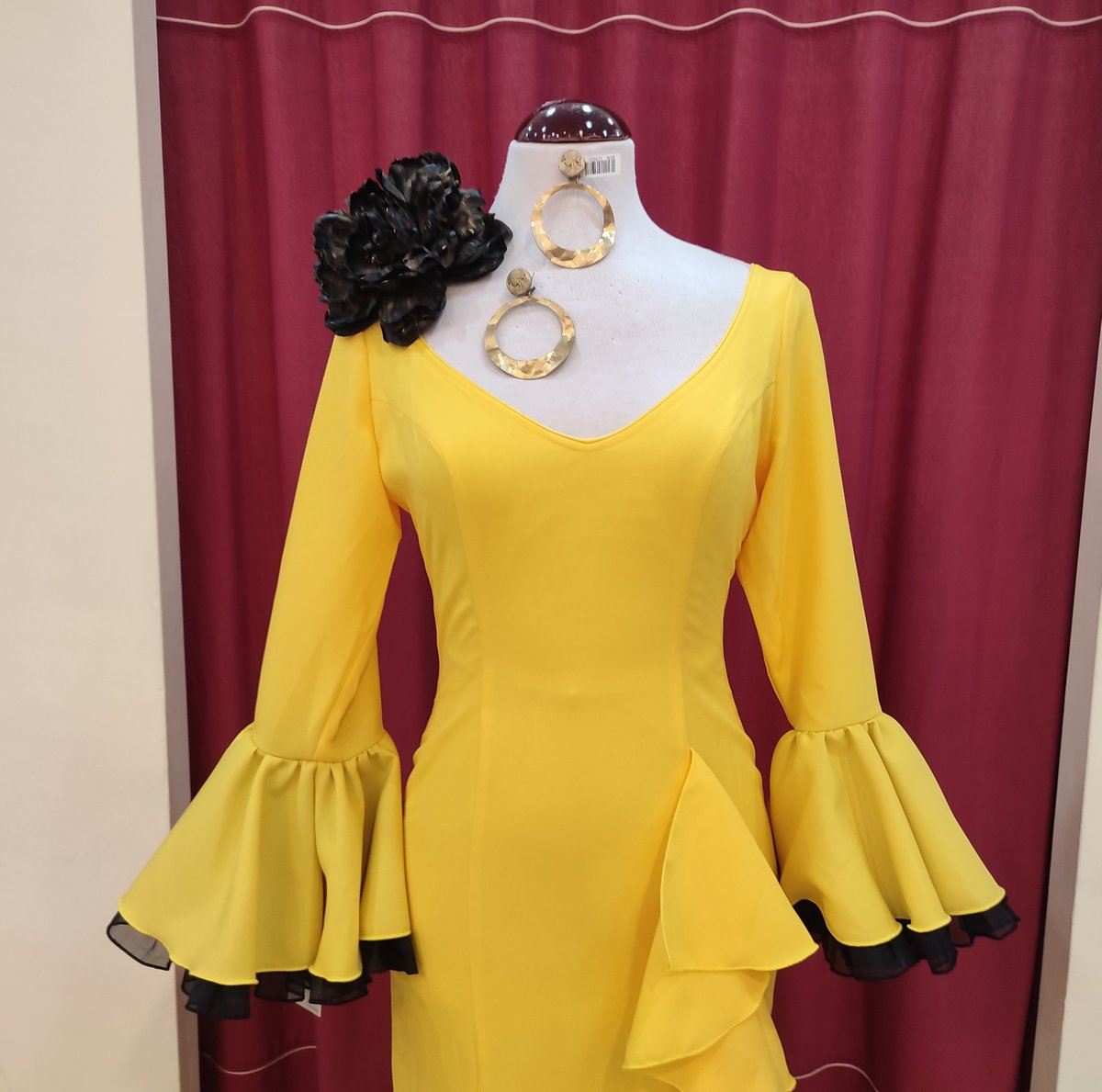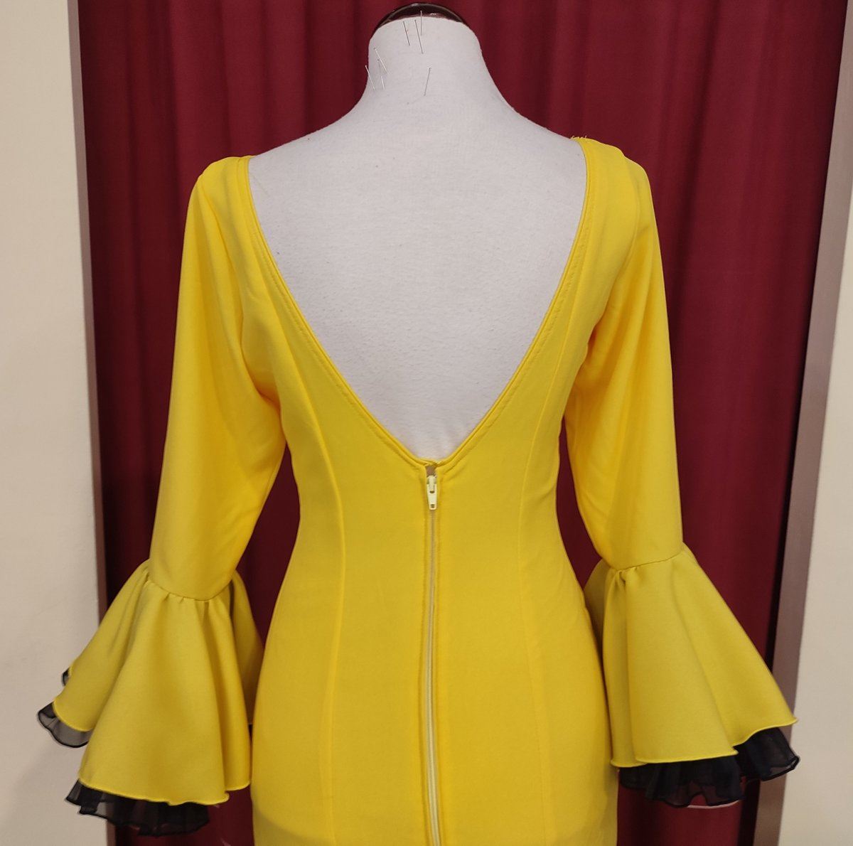 Vestido con corte de godet confeccionado en tela de strech en color amarillo.