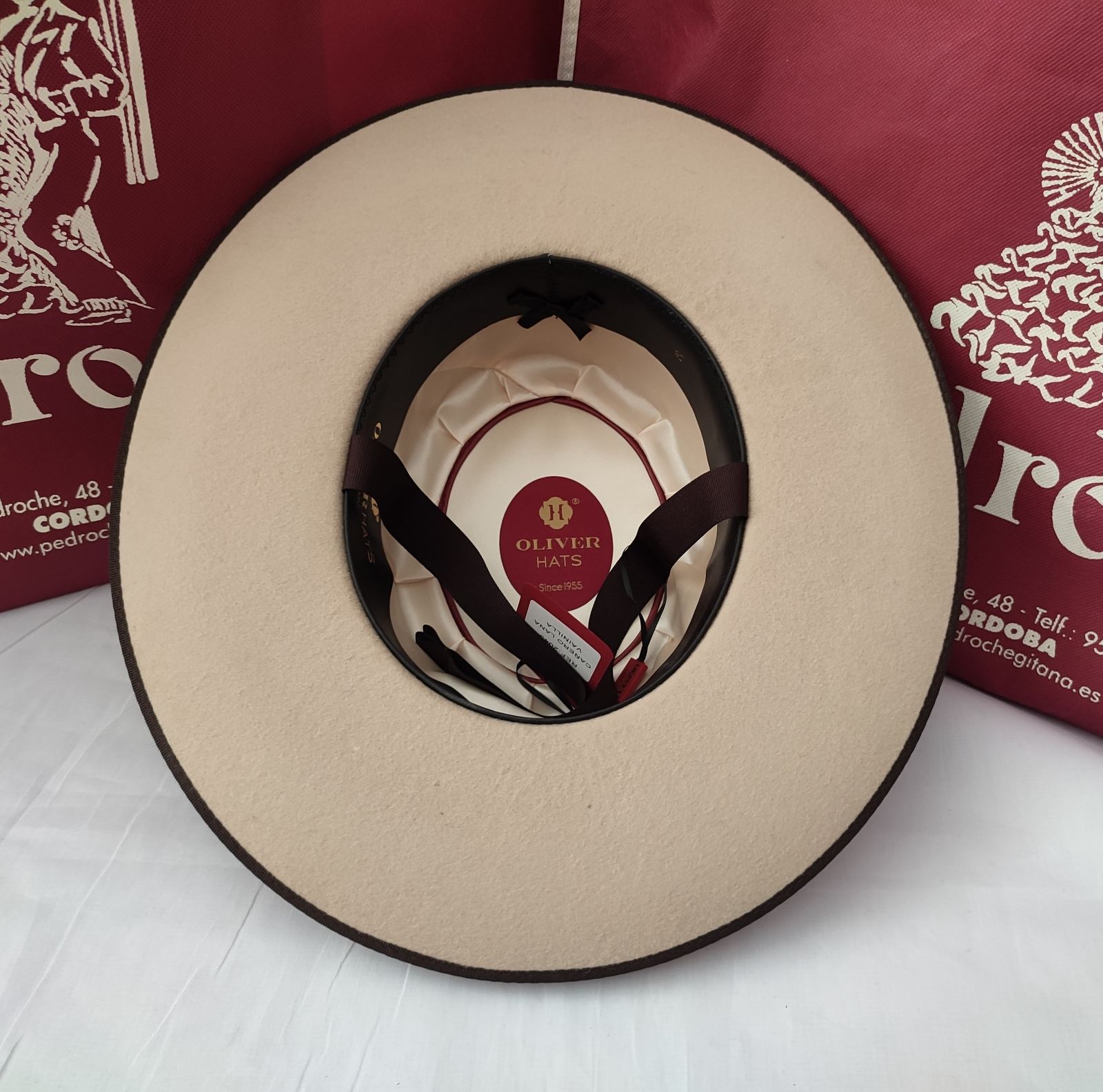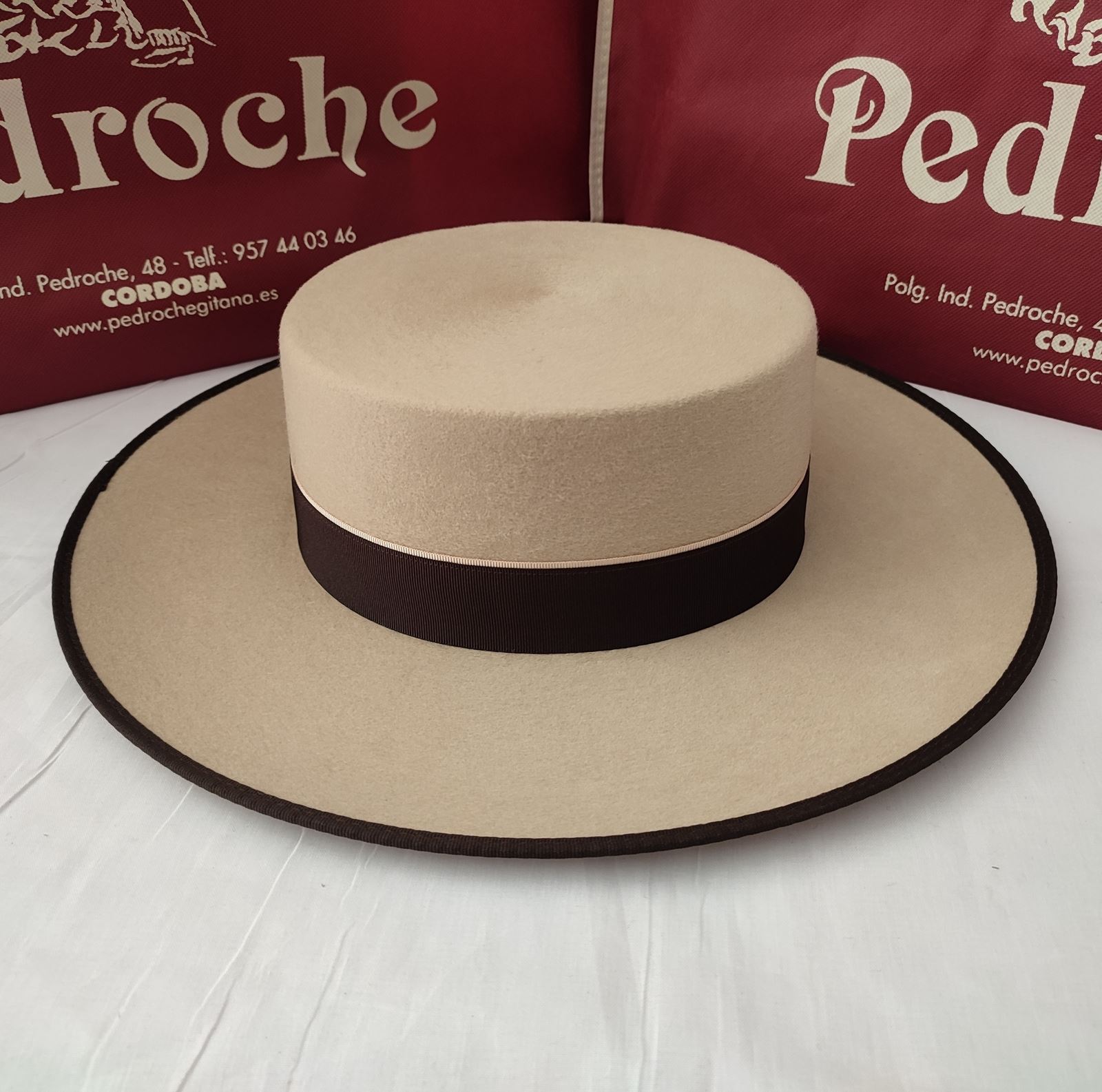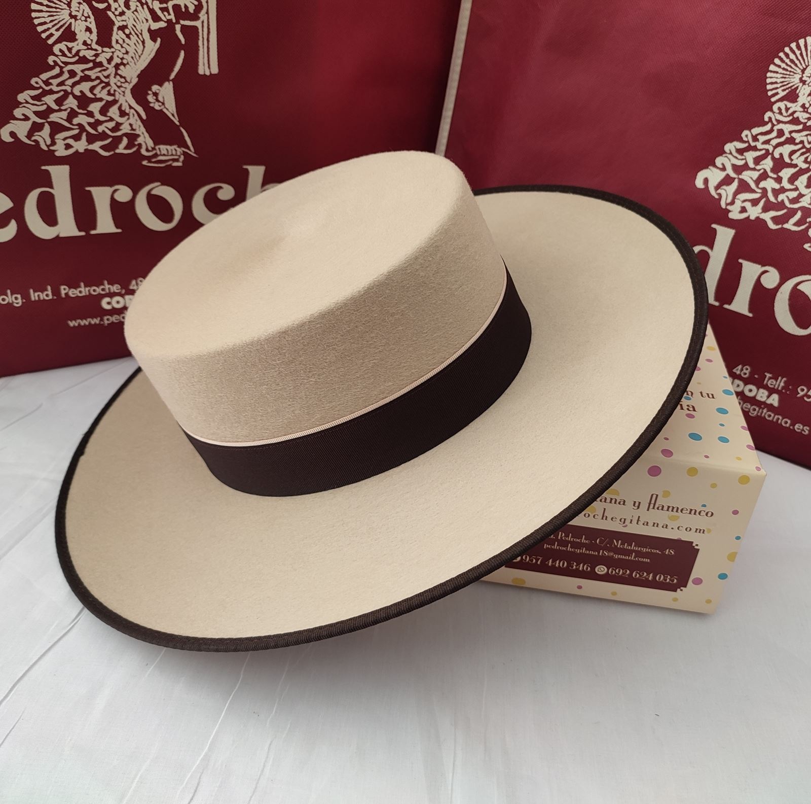 Sombrero campero. Confeccionado con lana de 180 gramos. Color vainilla con cinta en marron y filo beige. Farbricado en España. Unisex.