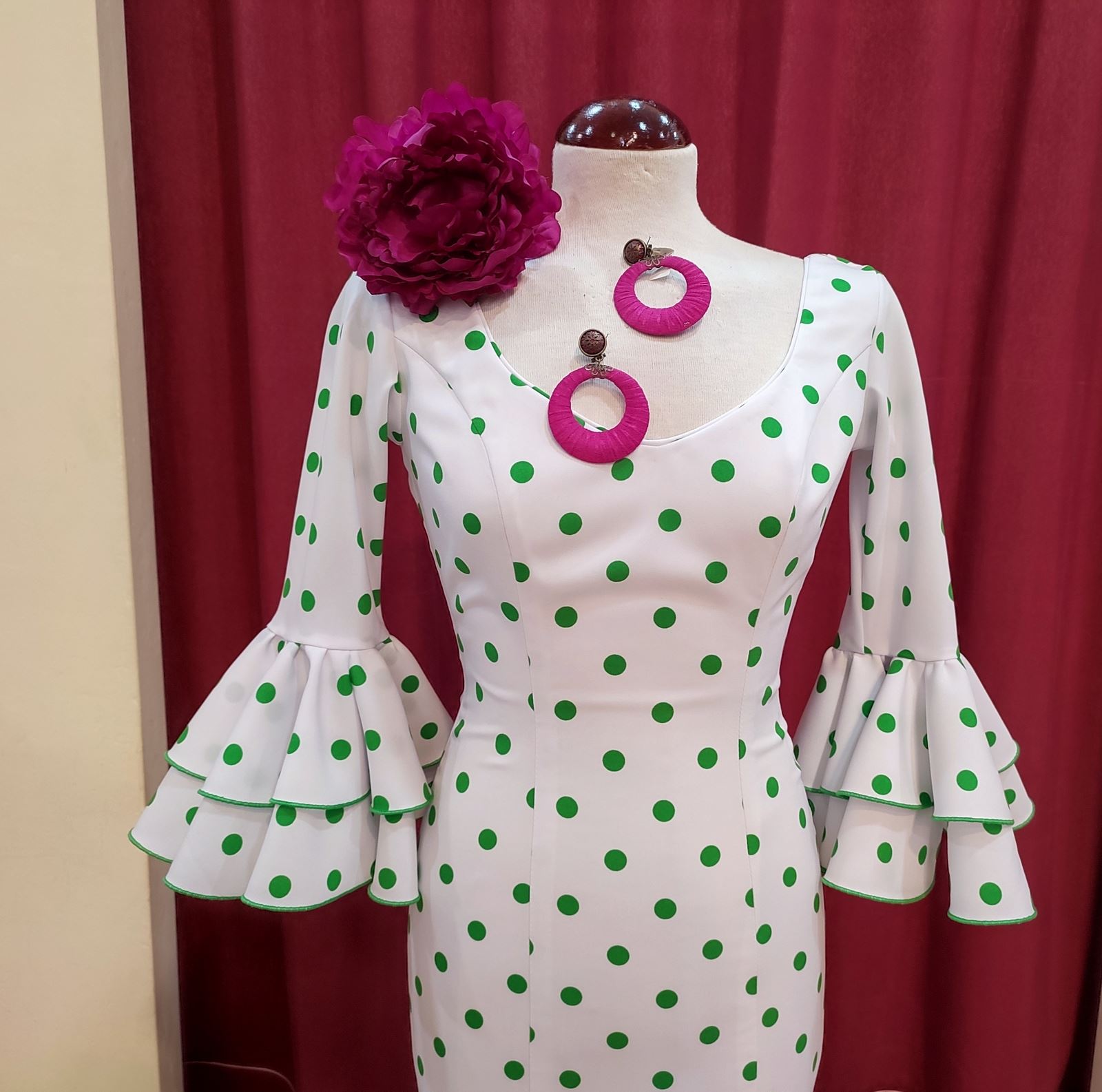 Color blanco con lunares en verde andalucia.