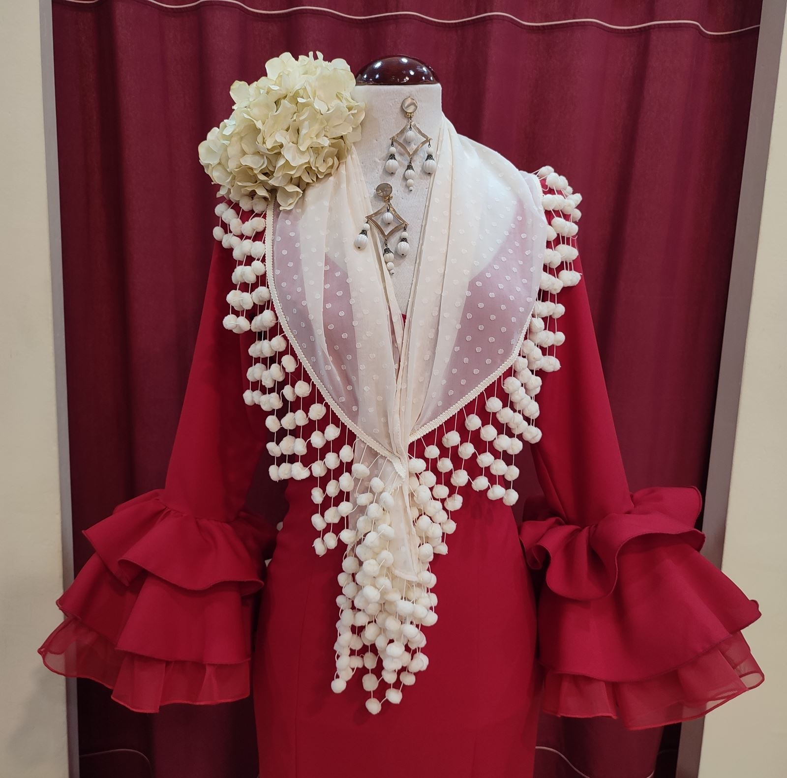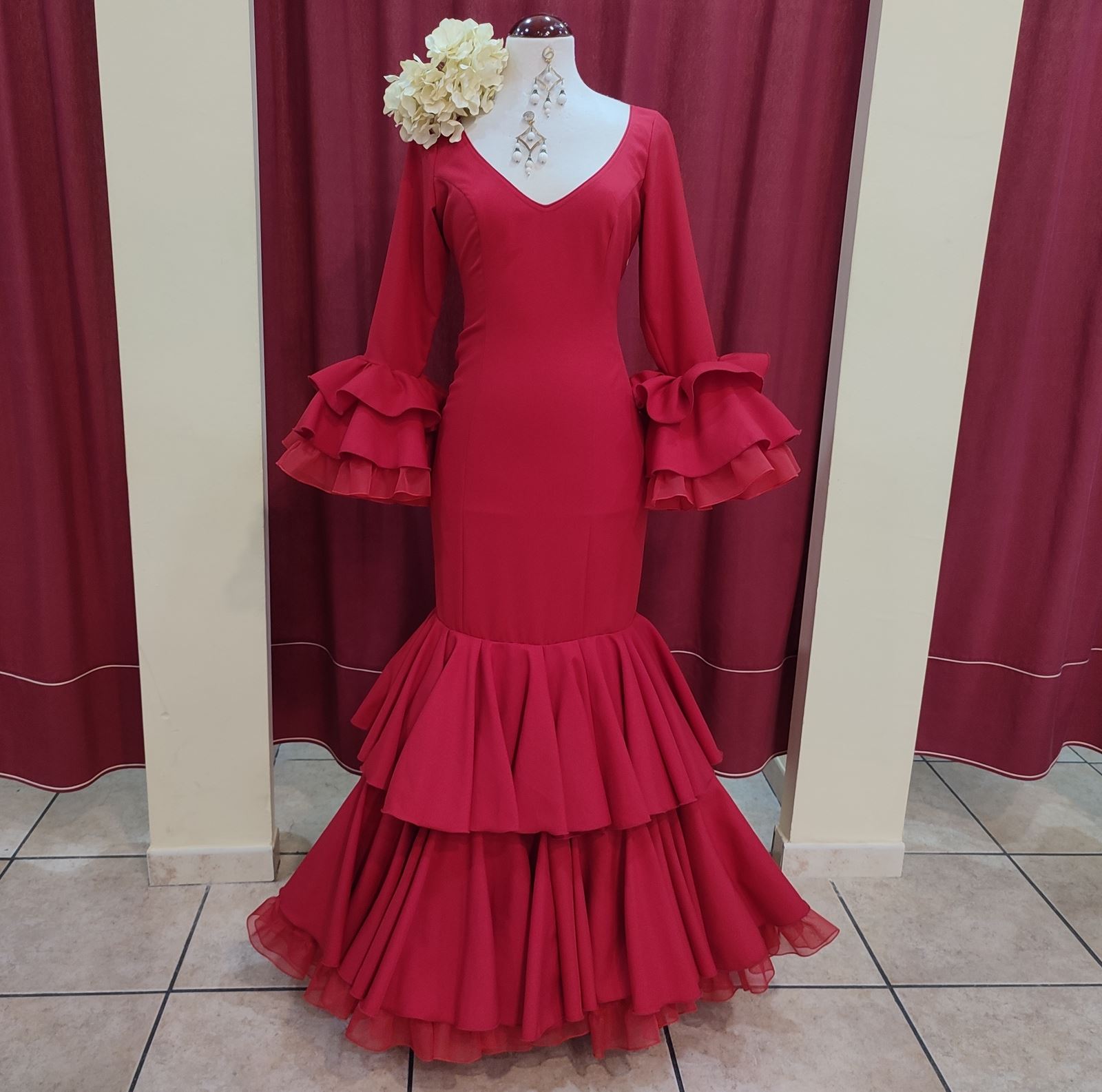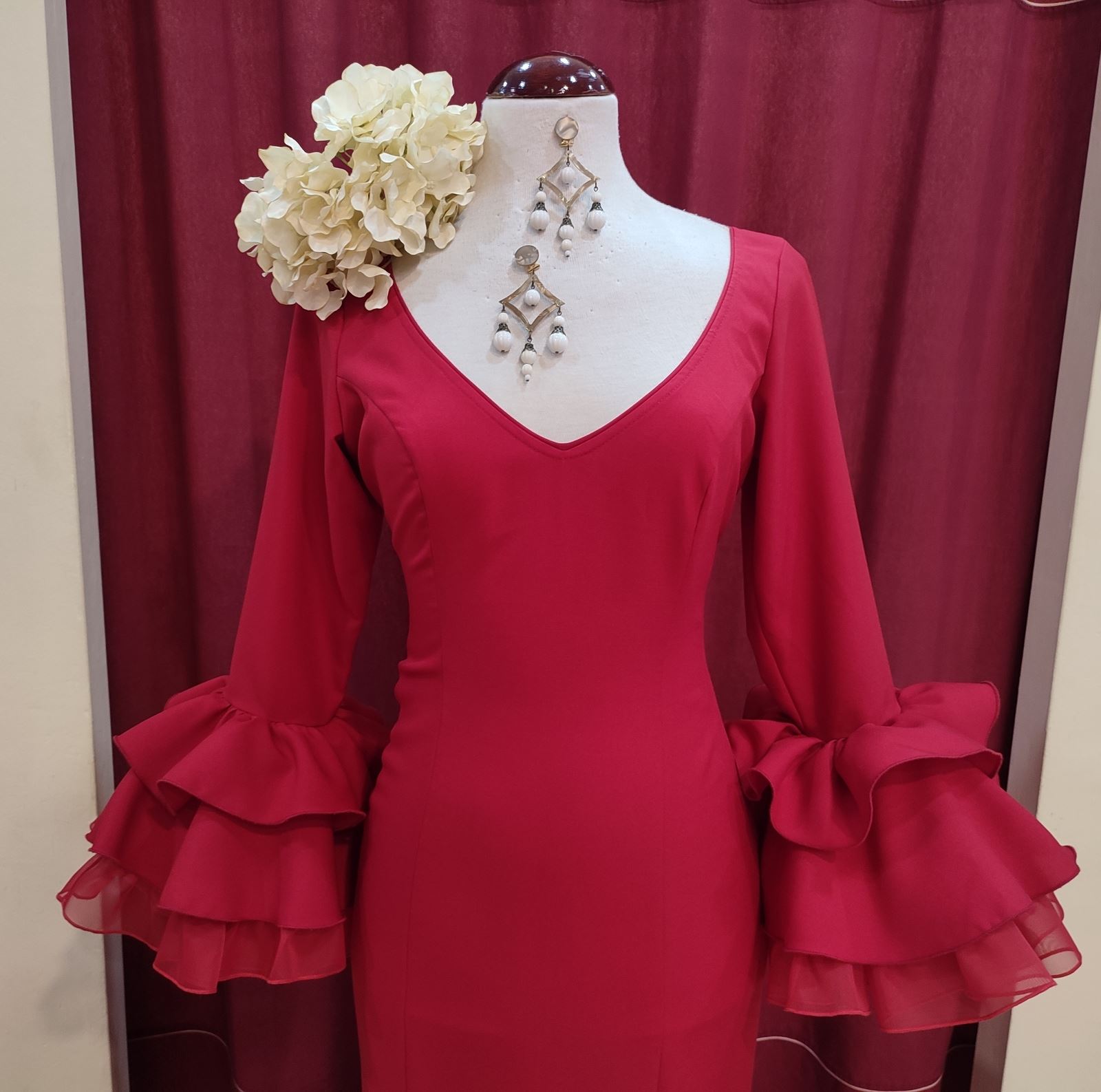 Vestido de flamenca confeccionado en tela de strech en color rojo.