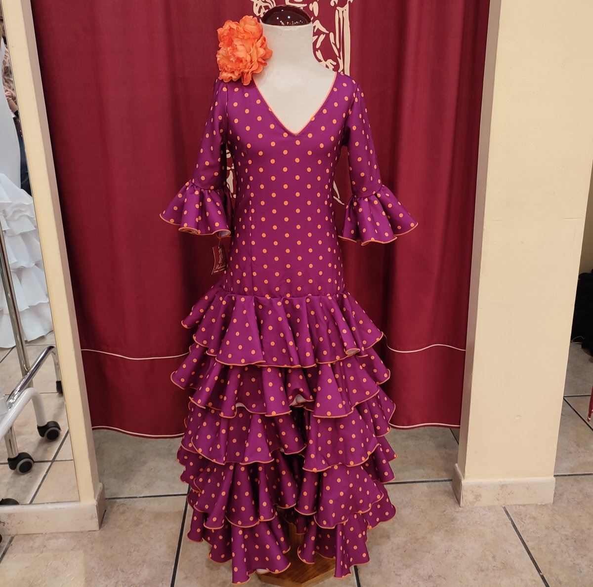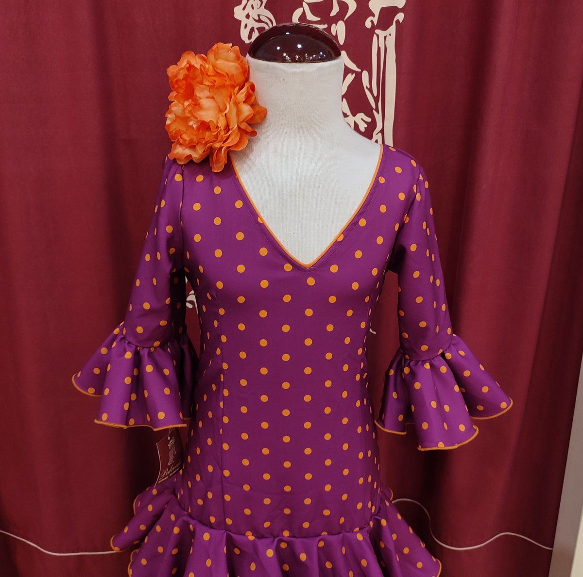 Confeccionado en tela de strech color buganvilla lunar naranja.