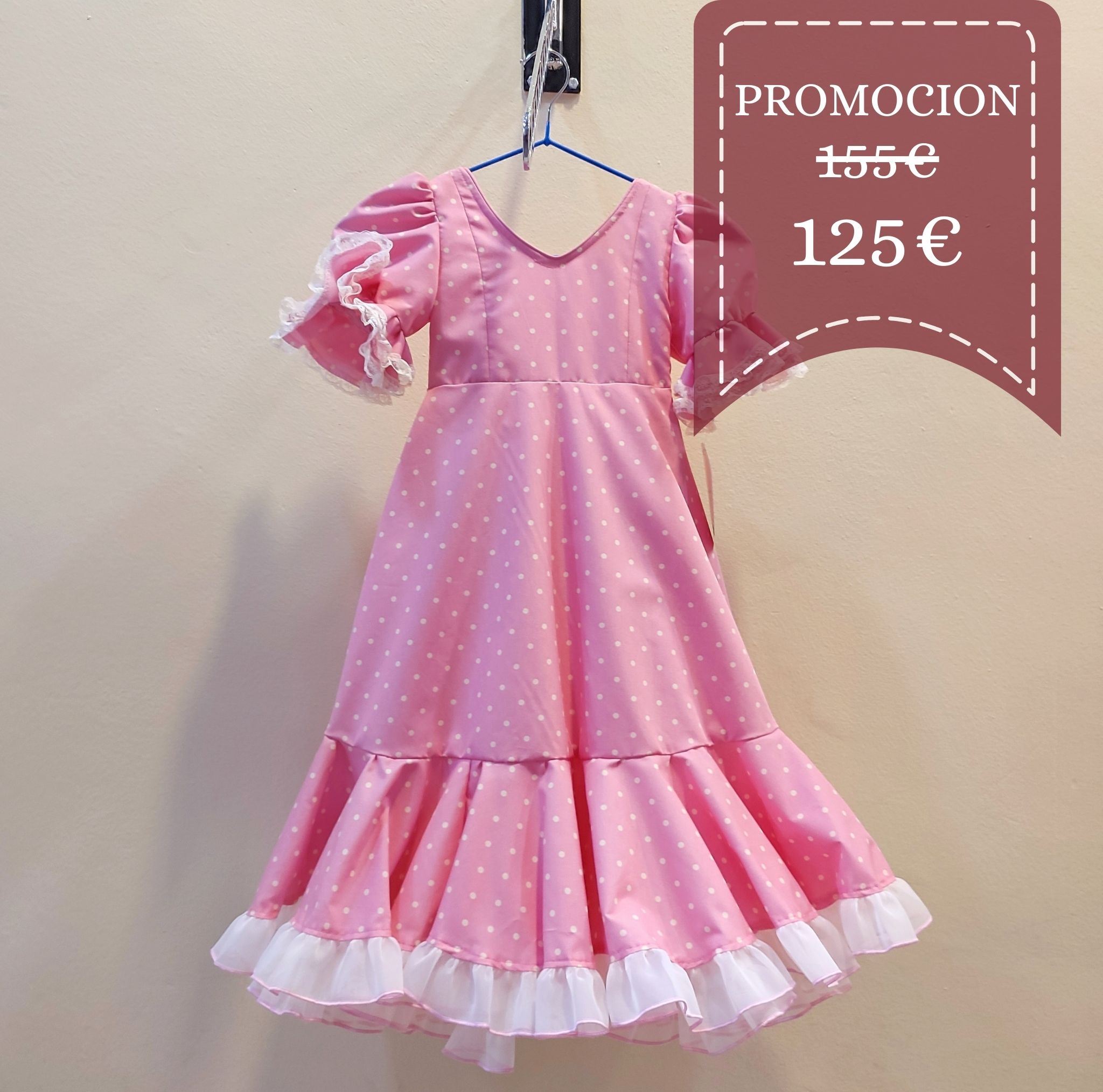 Sé el primero en valorar “Vestido Flamenca Niña PALMERA Rosa Bebe Lunar Beige”