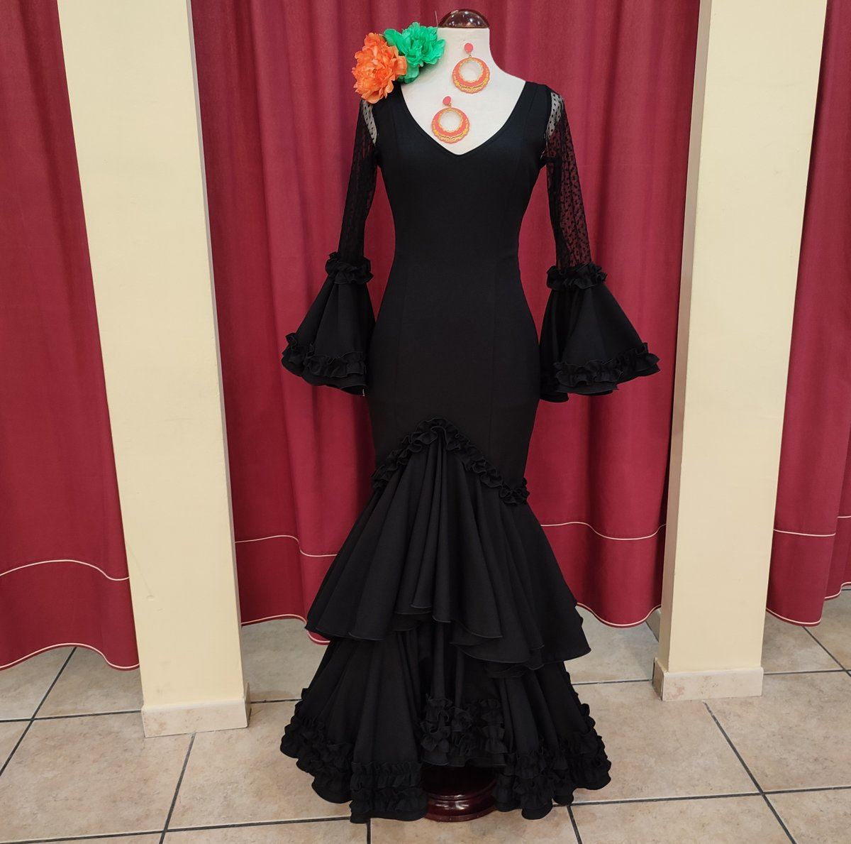 Vestido de flamenca confeccionado con tela de strech en negro.