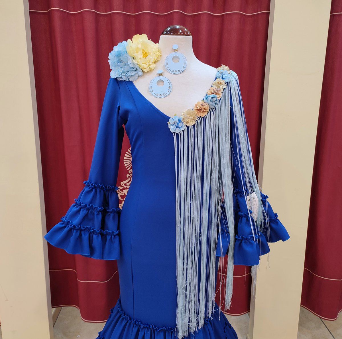 Vestido de flamenca canastero confeccionado en tela de strech azulon.
