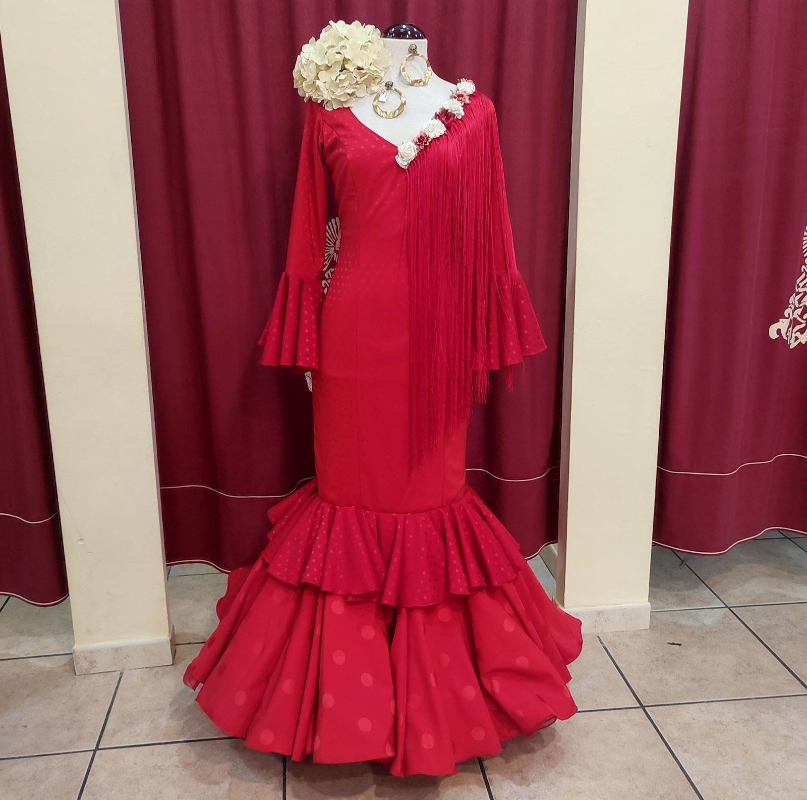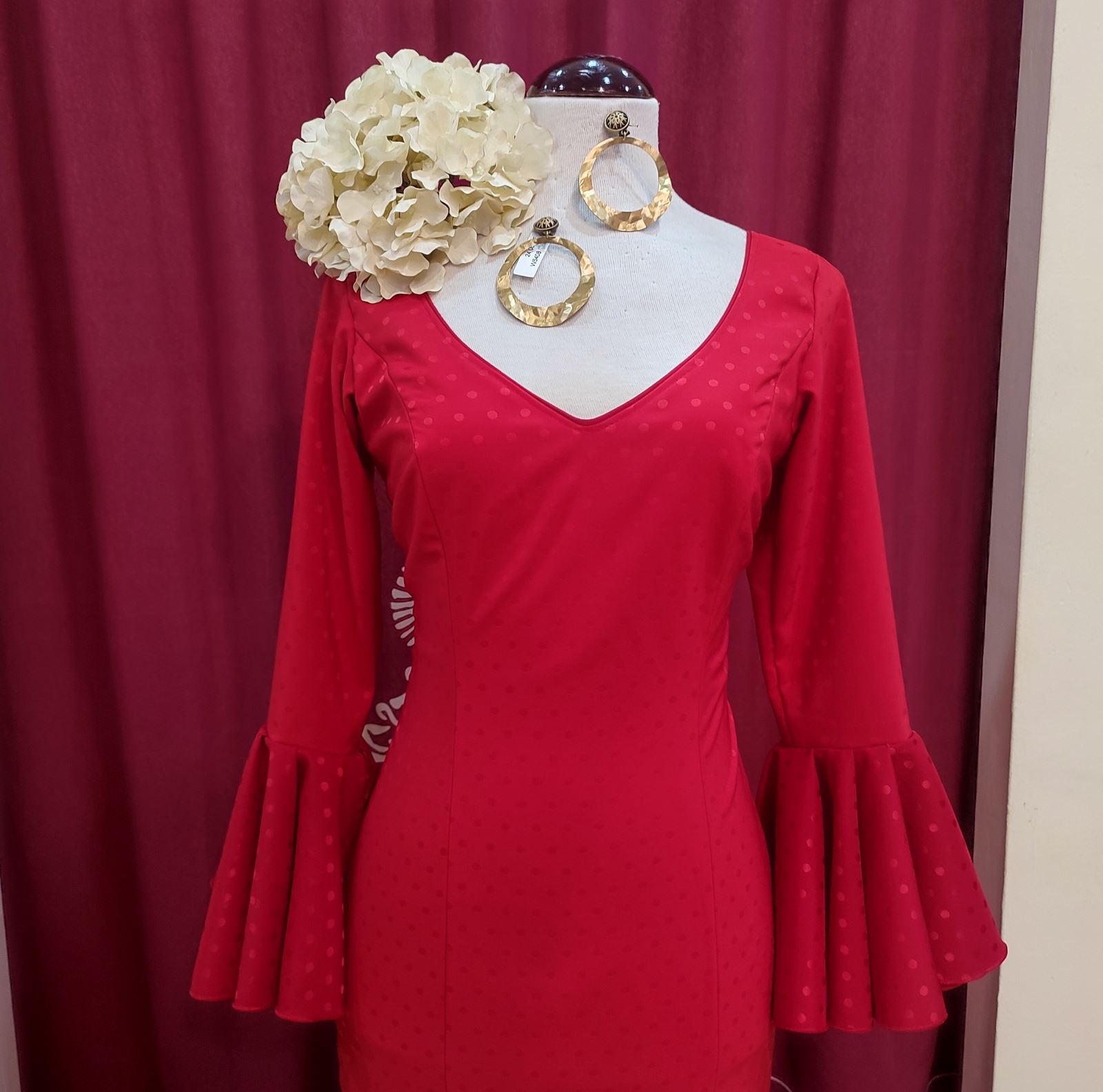 Color rojo con lunar pequeño. En el ultimo volante cambia el tamaño del lunar.