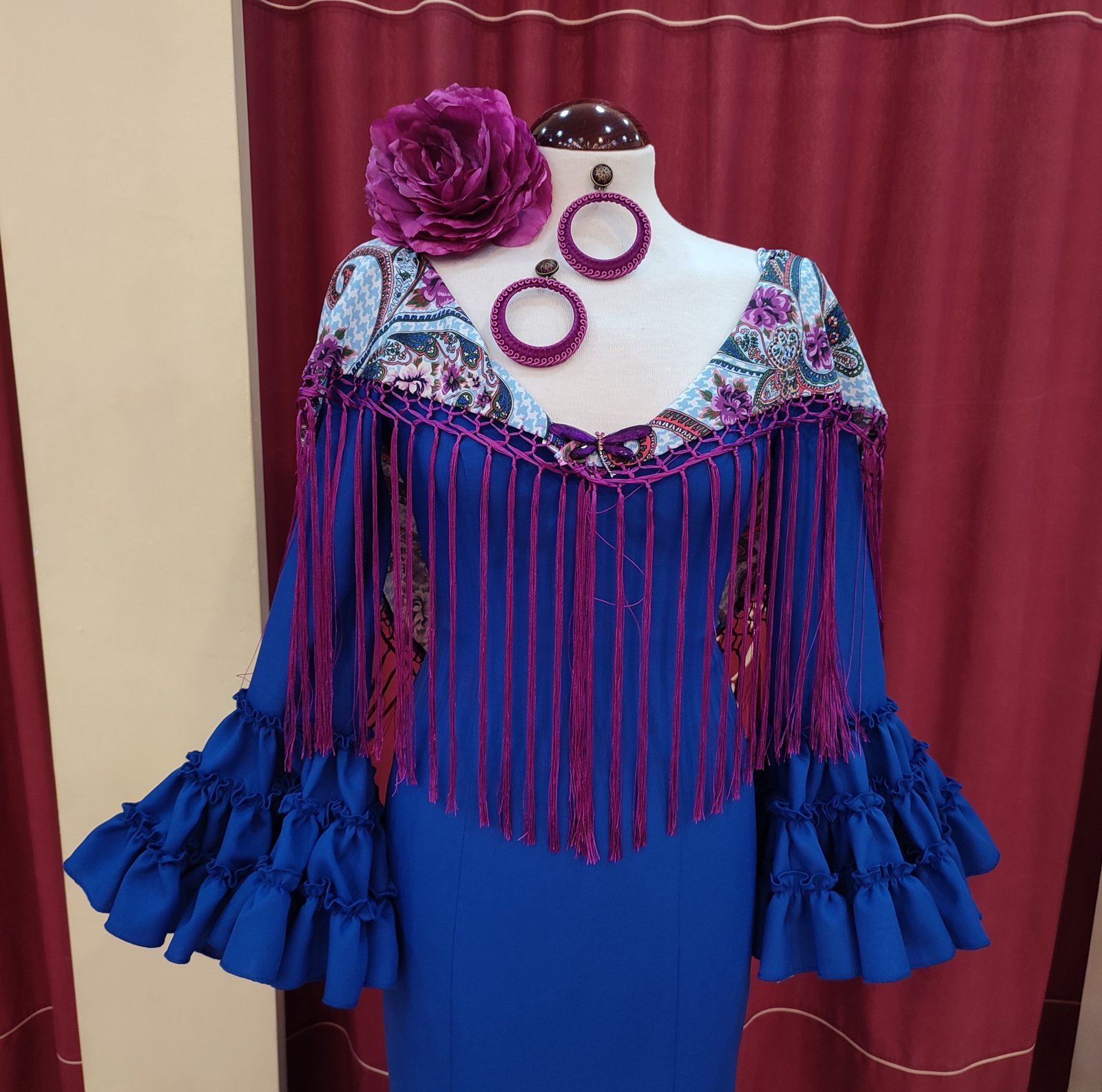 Vestido de flamenca canastero confeccionado en tela de strech en color azulon.