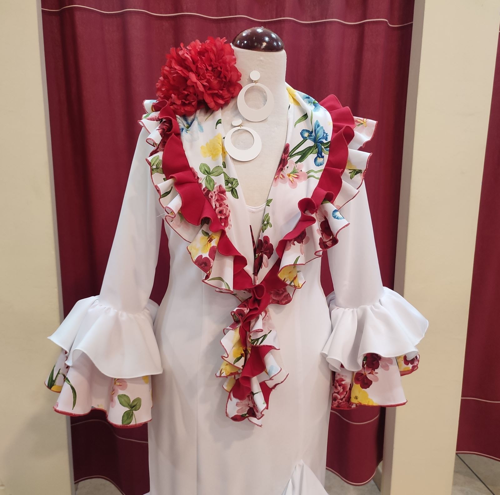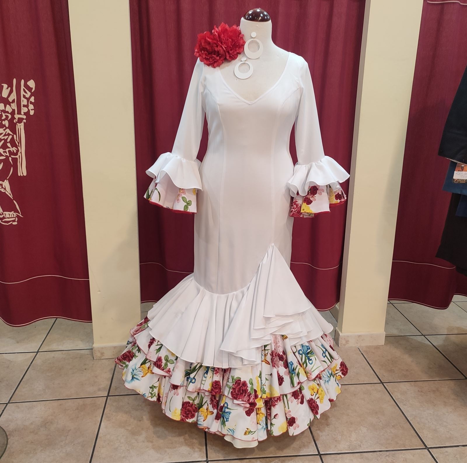 Vestido de flamenca confeccionado en tela de strech en color blanco.