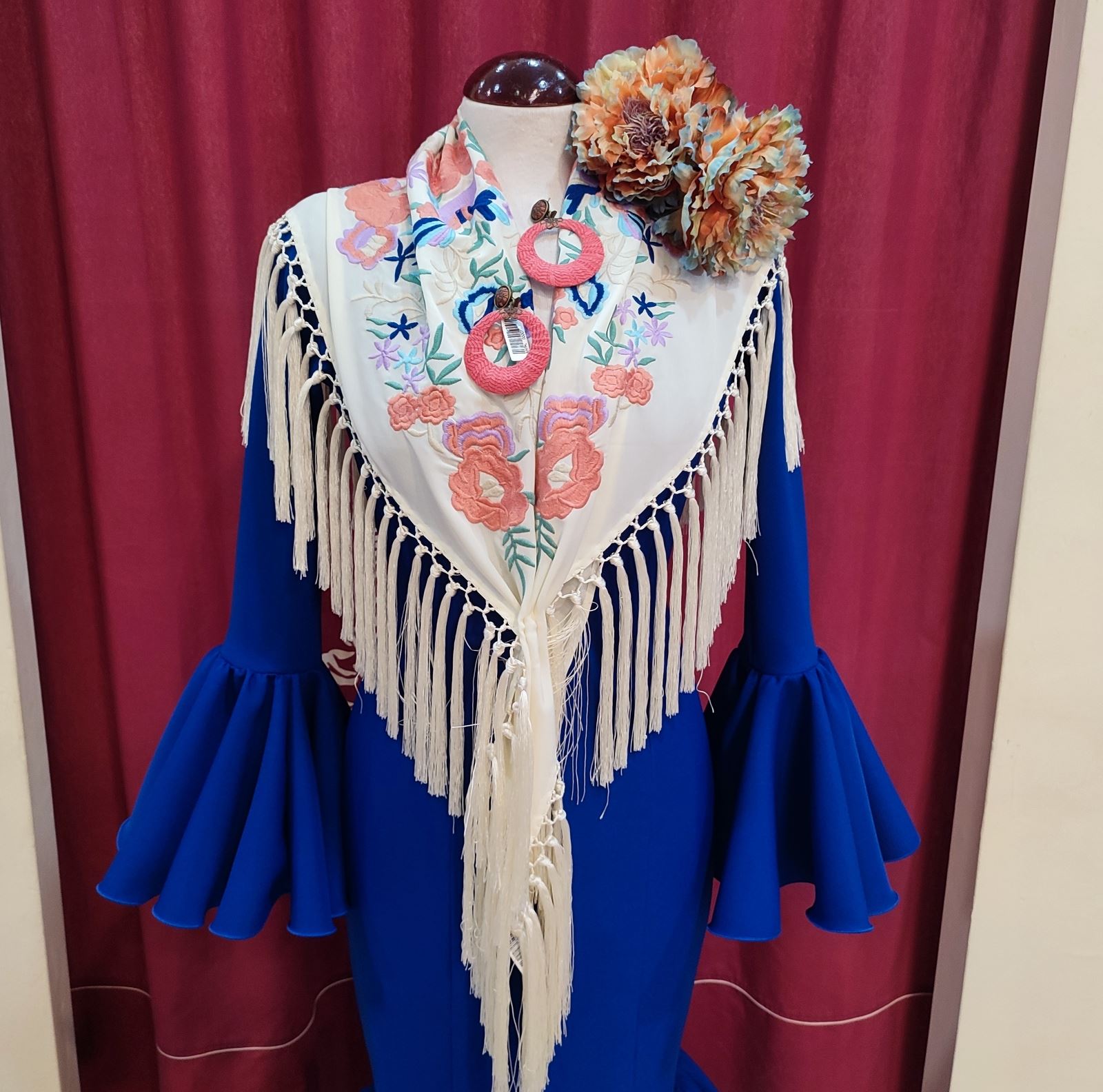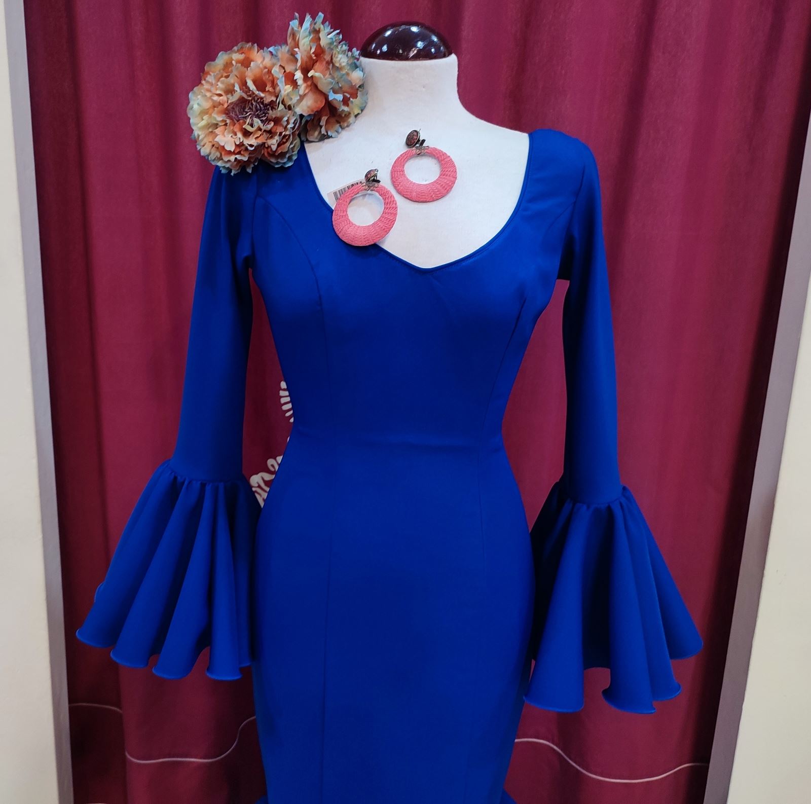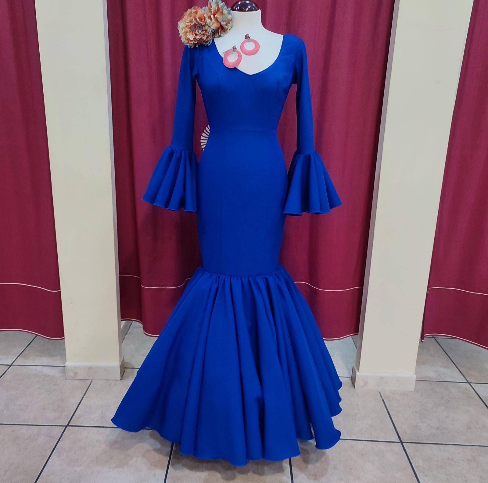 Vestido de flamenca confeccionado en tela strech en color azulon.